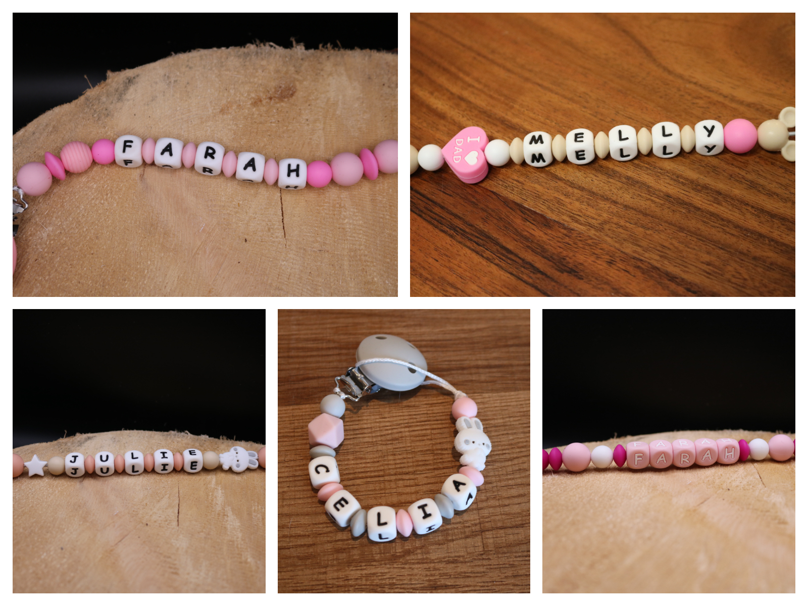 Longueur de l’attache tétine dépend du nombre de perles et de leur forme (normes 22cm max)