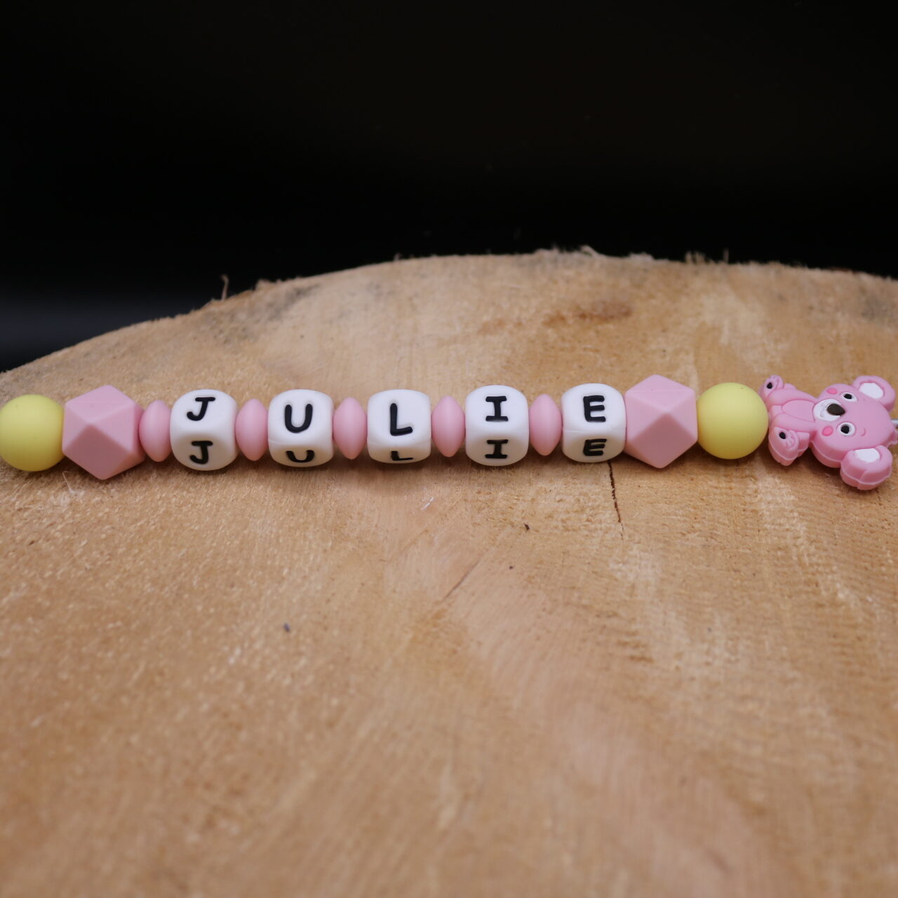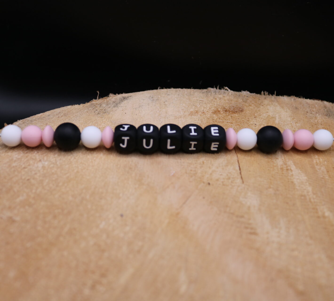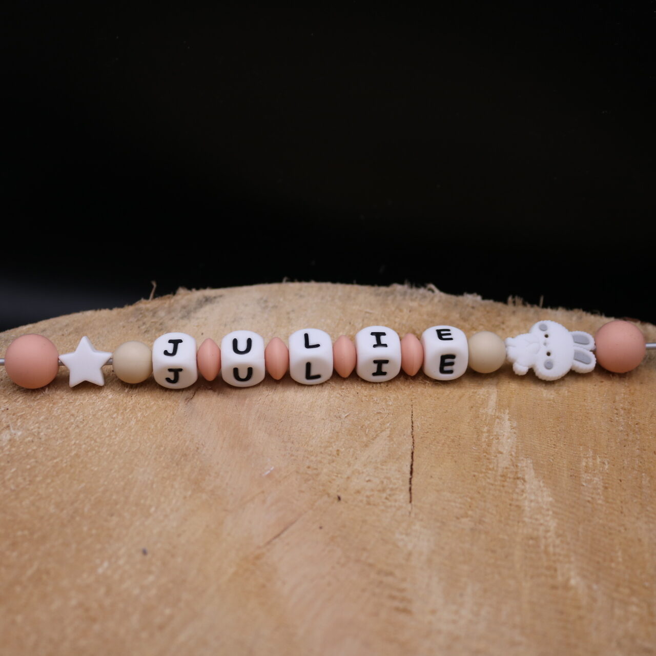 Fabriqué avec des perles en silicone, longueur max 22 cm (respect des normes de sécurité en vigueur).