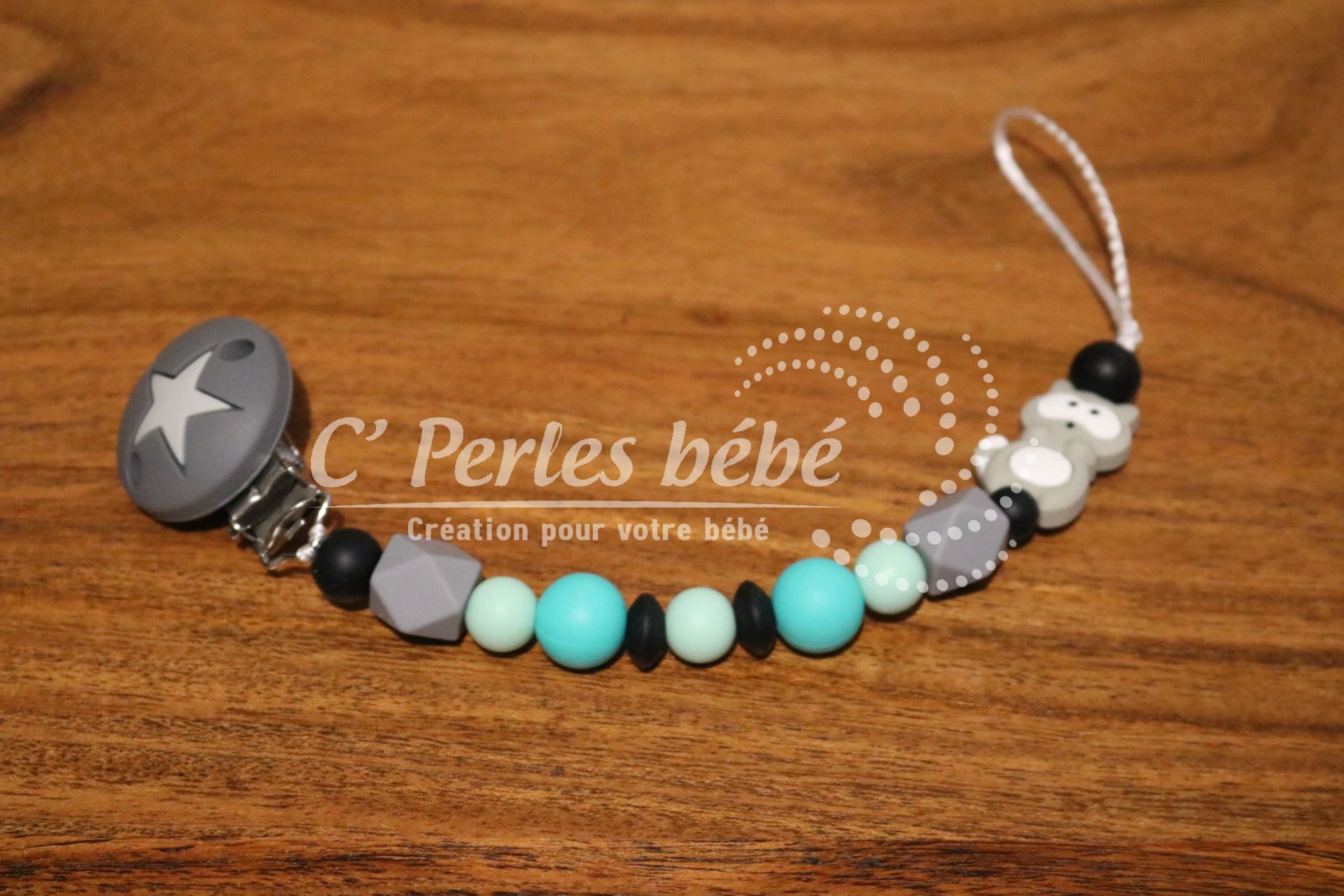 Longueur de l’attache tétine dépend du nombre de perles et de leur forme (normes 22cm max)
