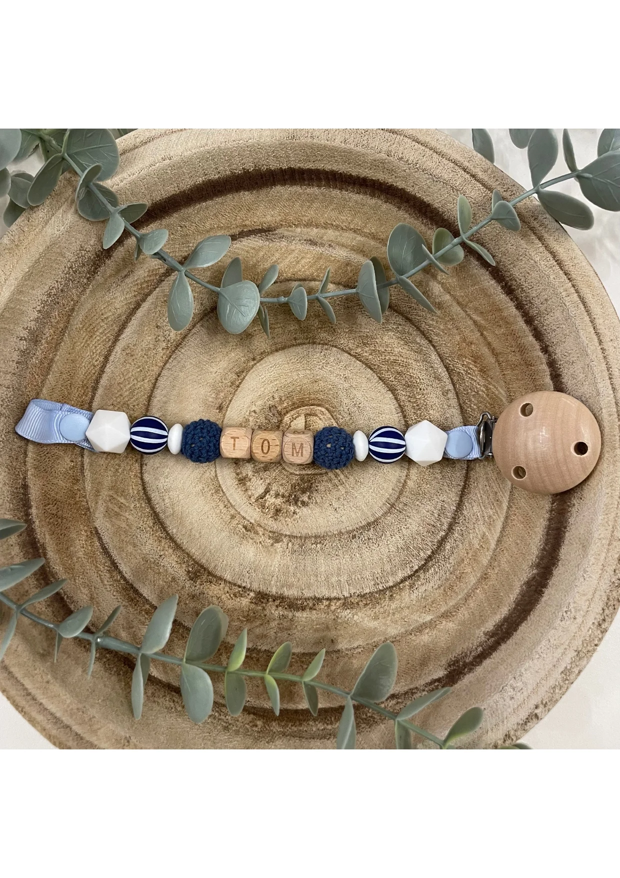 Attache tétine rayure bleue