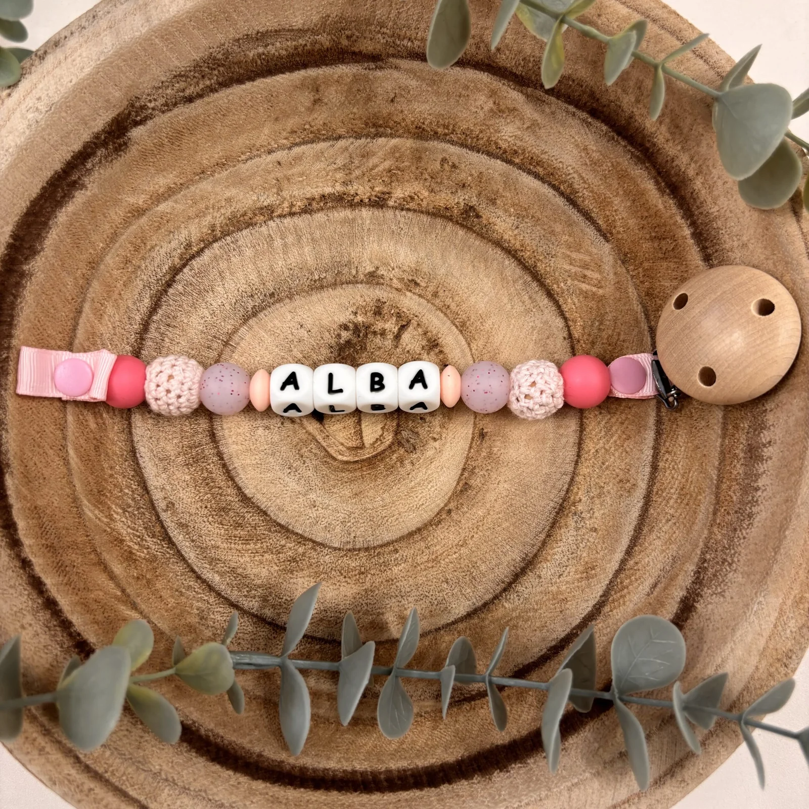 Attache tétine rose et paillettes