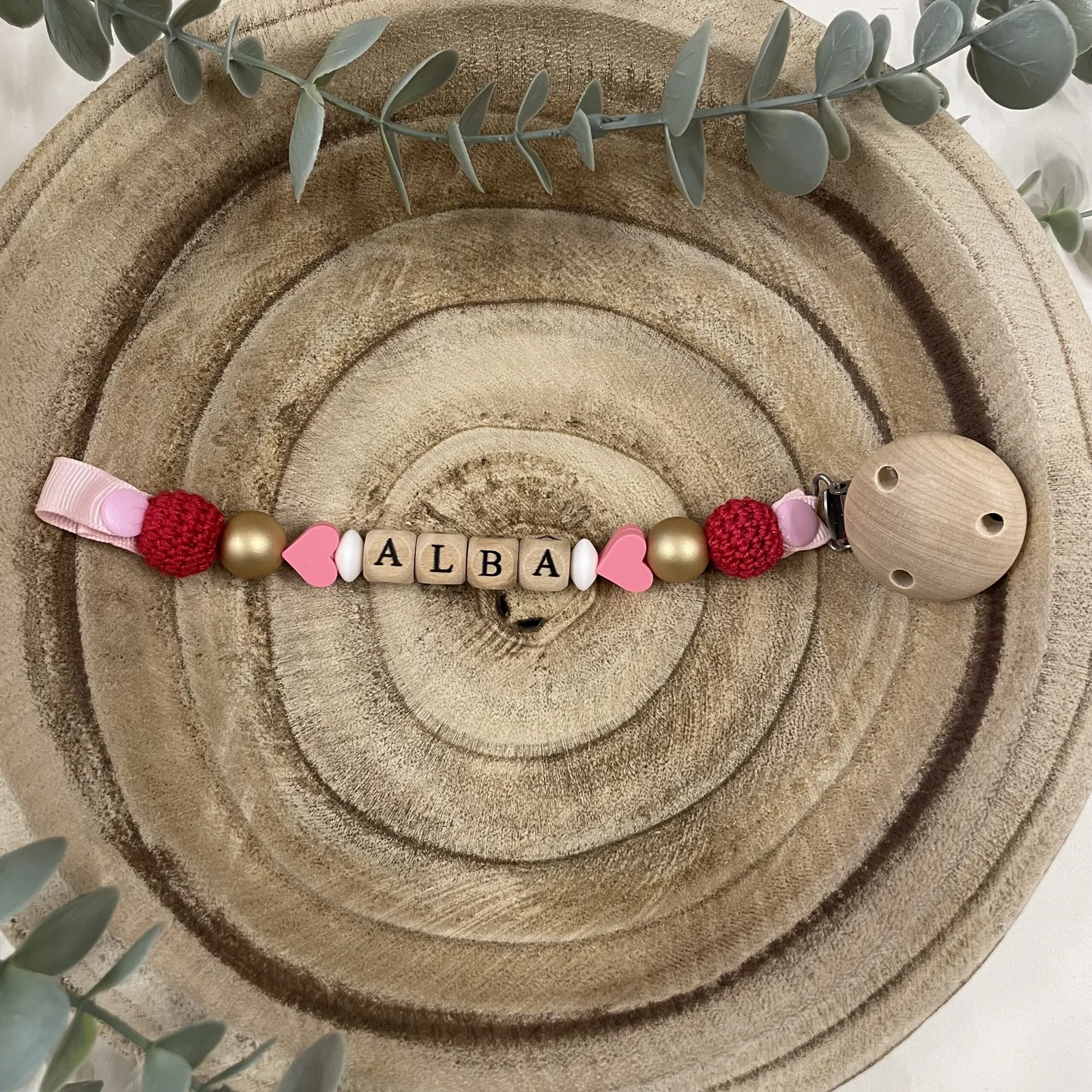 Modèle simple d’utilisation: L’attache tétine s’attache à l’anneau de la tétine grâce à un système de boutons pression.