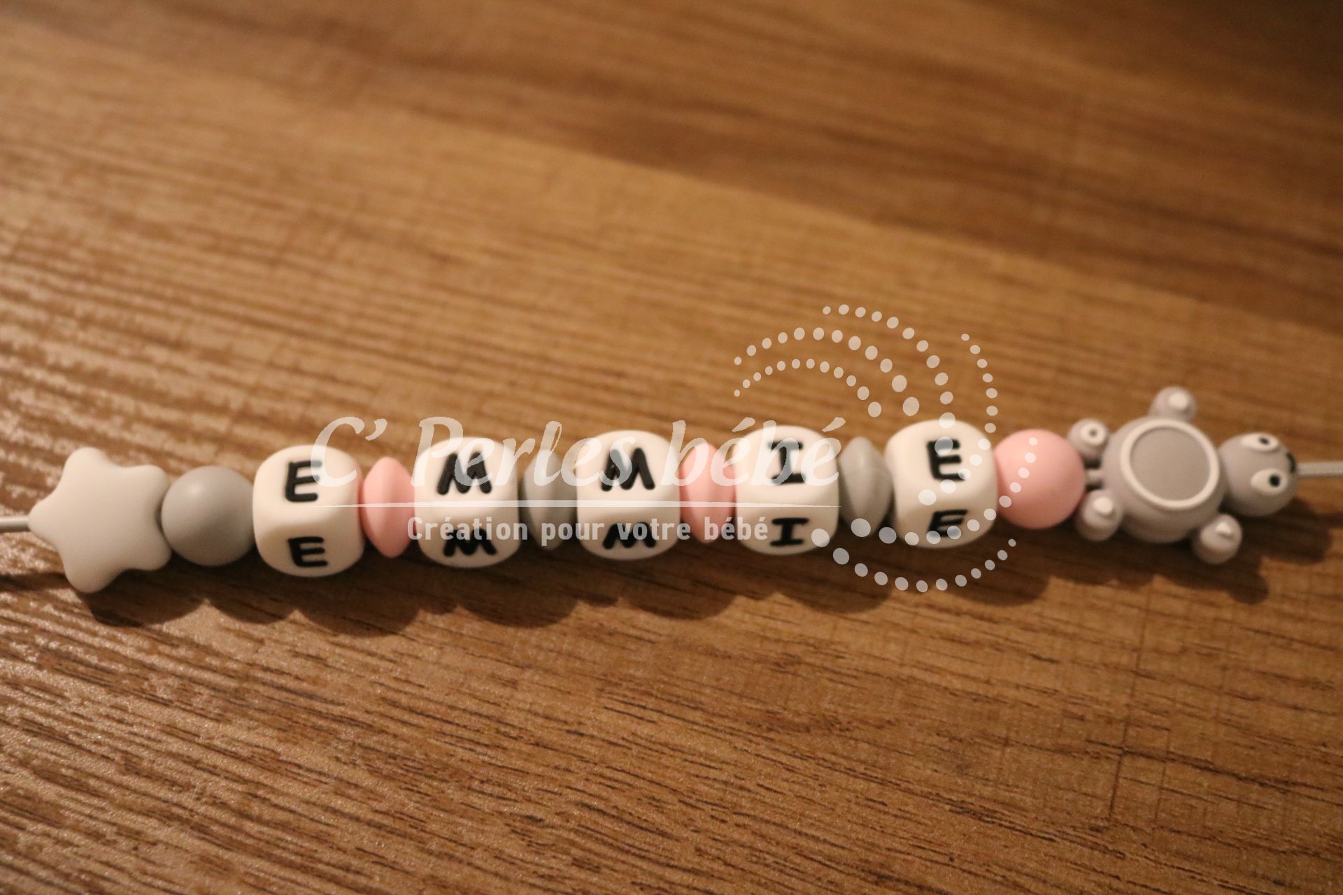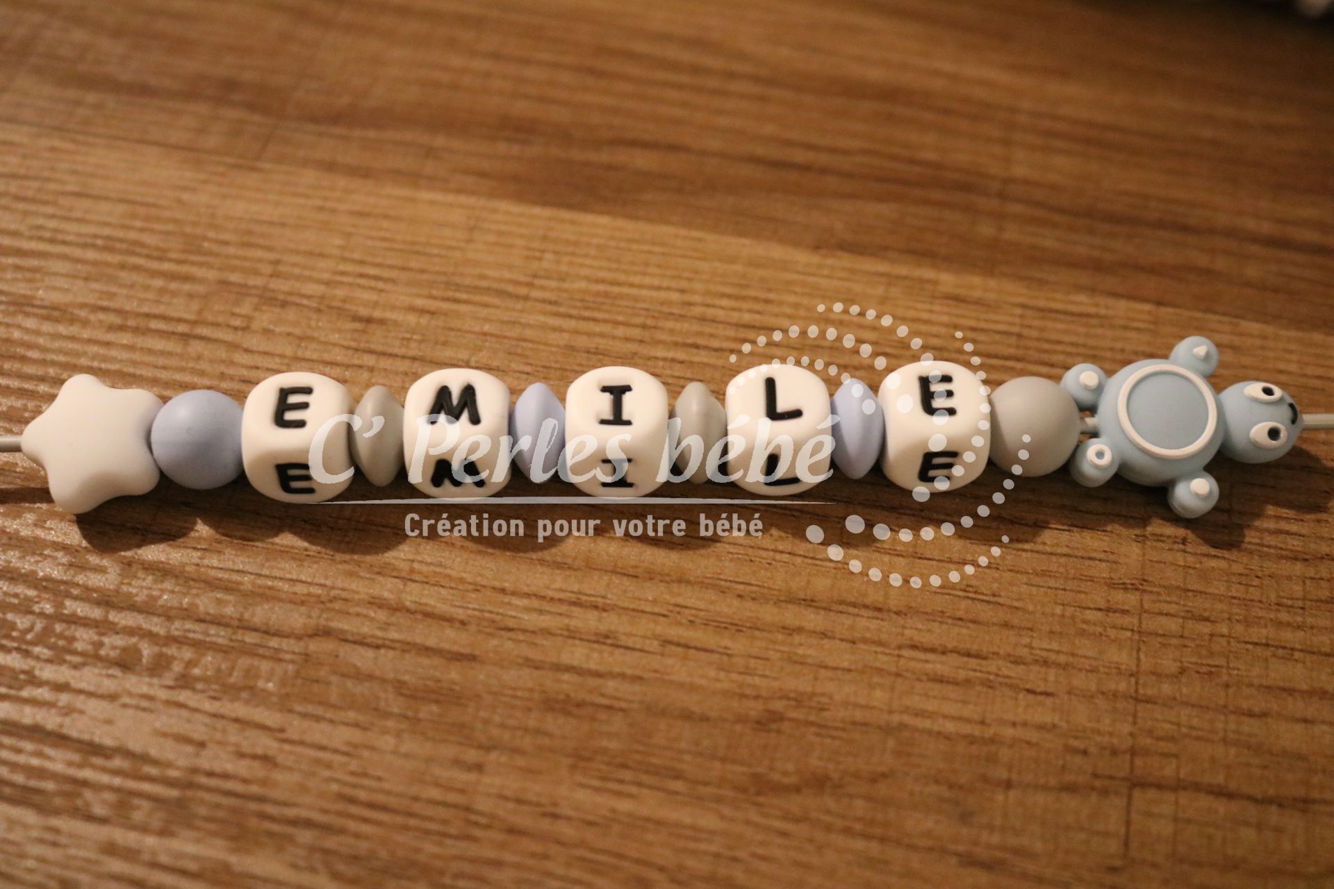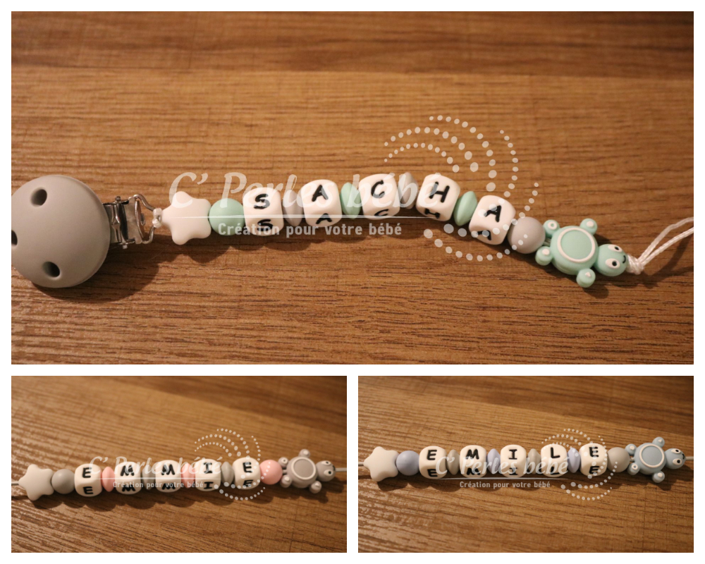 Il est disponible en différents coloris pour l’adapter à vos gouts. Les perles lettres sont disponibles en blanc, noir, bleu, rose, vert ou gris.