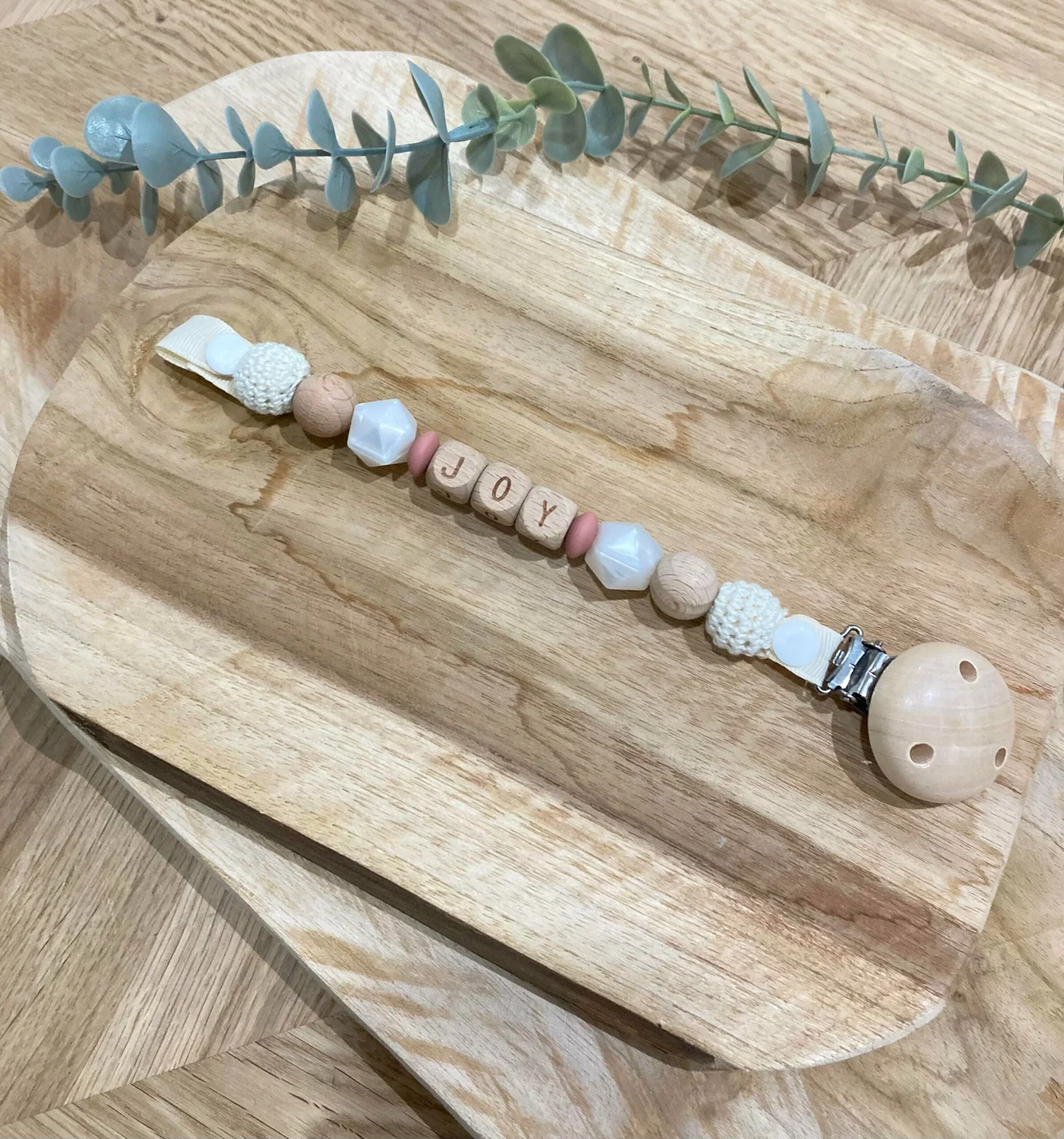 Attache tétine vieux rose