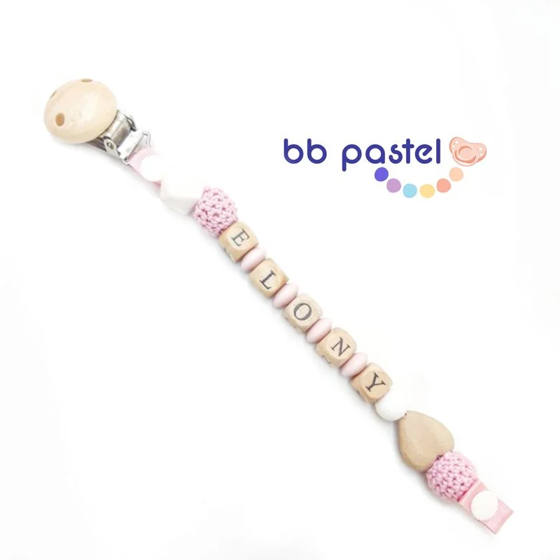 Modèle simple d’utilisation: L’attache tétine s’attache à l’anneau de la tétine grâce à un système de boutons pression.