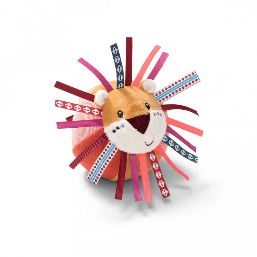 Parfois, les jouets les plus simples sont les plus amusants. Les petits doigts peuvent facilement attraper et faire rouler cette petite balle de Jack le Lion aux jolies couleurs vives. Un lion a attraper par sa crinière de rubans colorés et dont le son du grelot ravira les tout-petits.