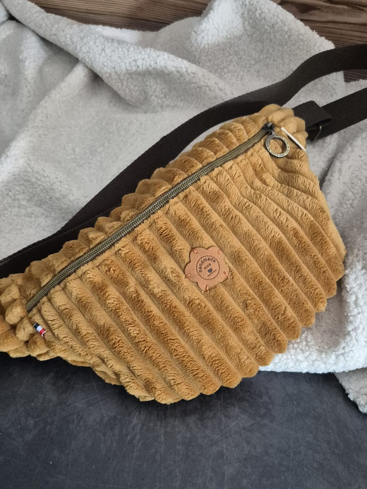 Banane Doudouce caramel – Baroudeuse Adoptez une banane faite main en France pour un porté chic et tendance. D’une praticité inégalée, elle est parfaite pour transporter vos essentiels de tous les jours. Ajustable grâce à sa grande longueur de sangle, elle peut se porter par-dessus un grand manteau mais également l’été sur un simple tee-shirt. Depuis son grand retour elle peut se porter de différentes manières : en biais sur le devant du corps ou dans le dos. L’accessoire idéal pour un look tendance avec des matières et des intérieurs assortis. Lavage en machine à 30°C ou 40°C ou lavage à…