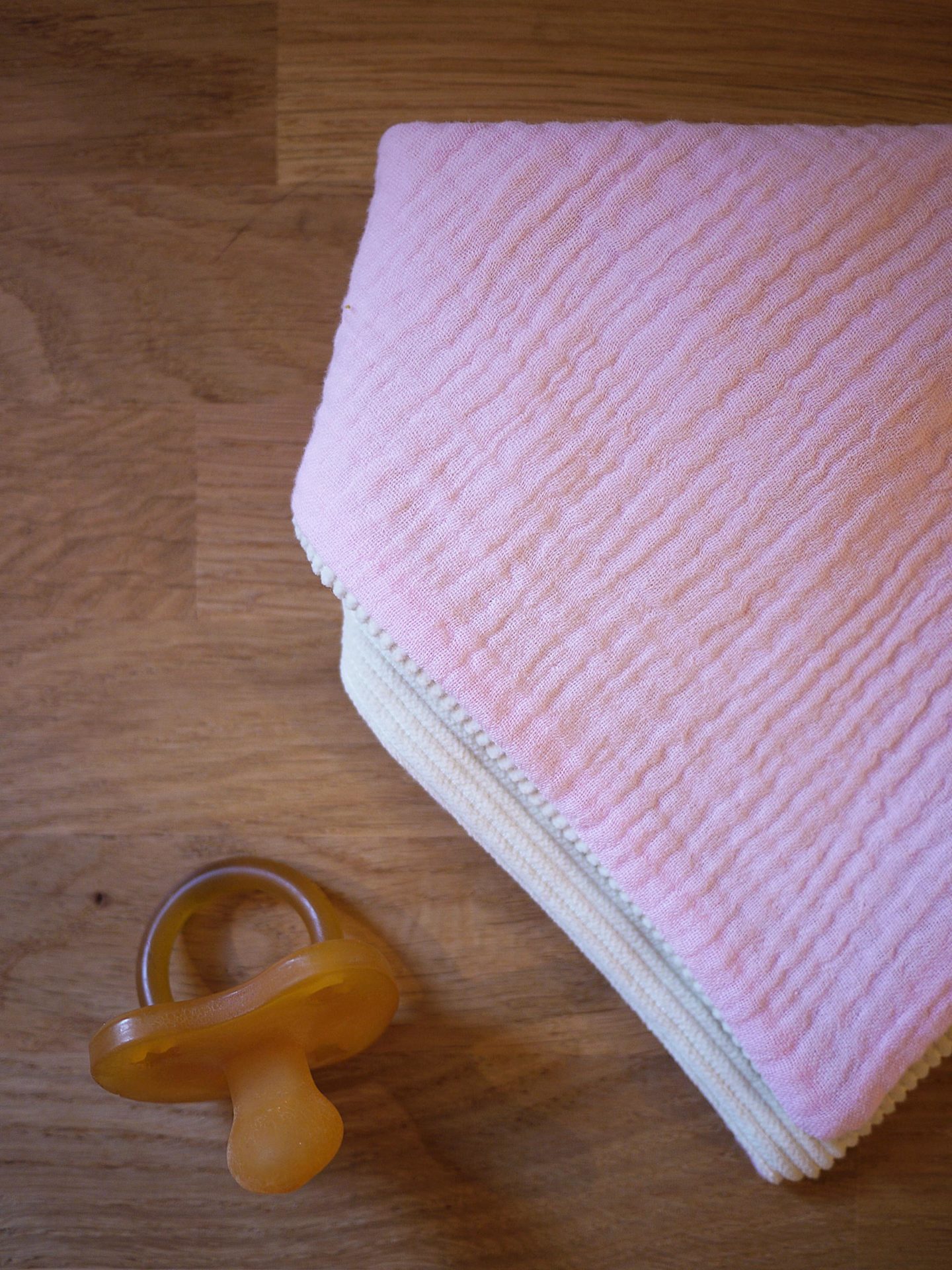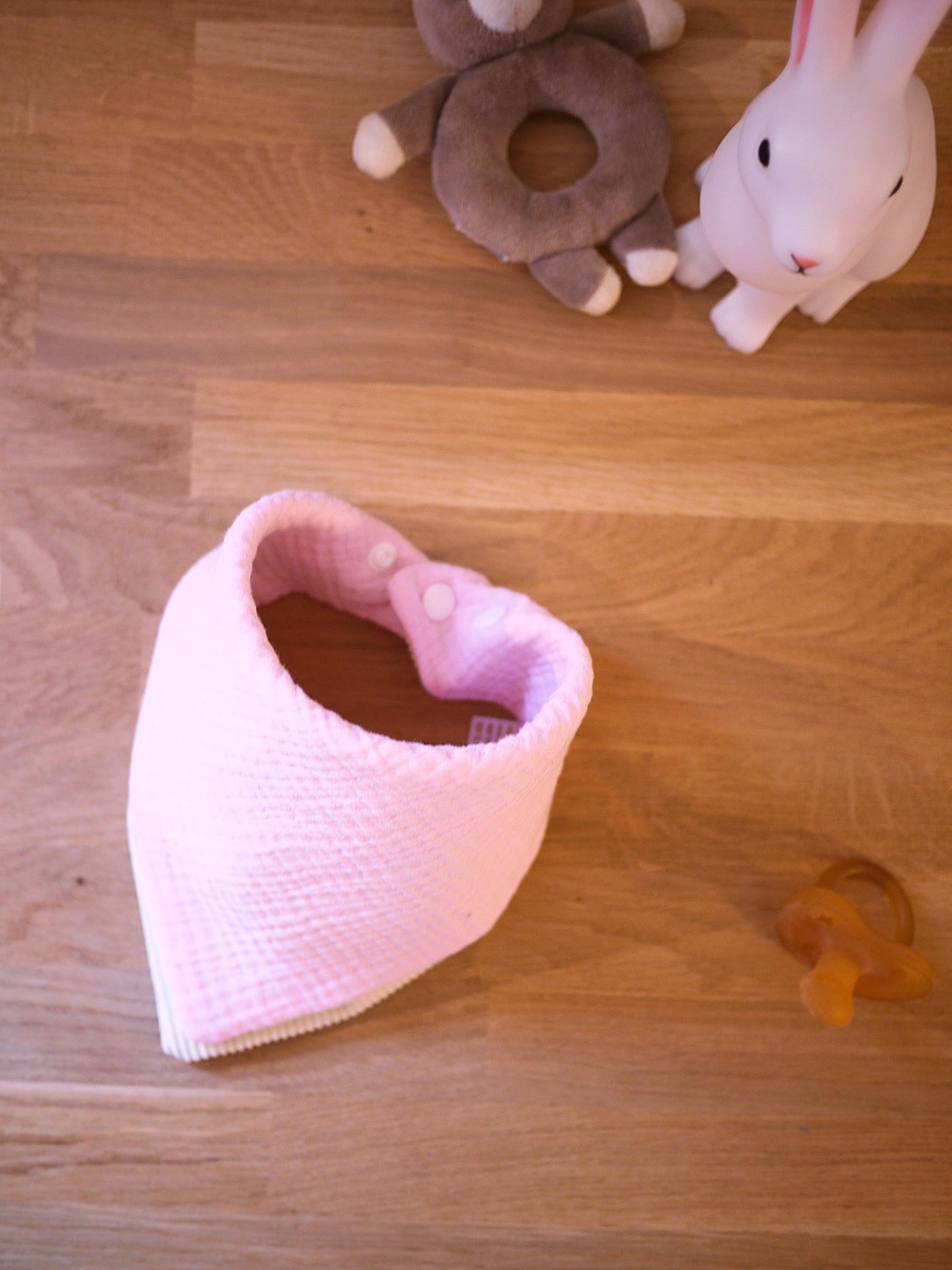 Bavoir bandana réversible Gaze de coton rose dragée et velours