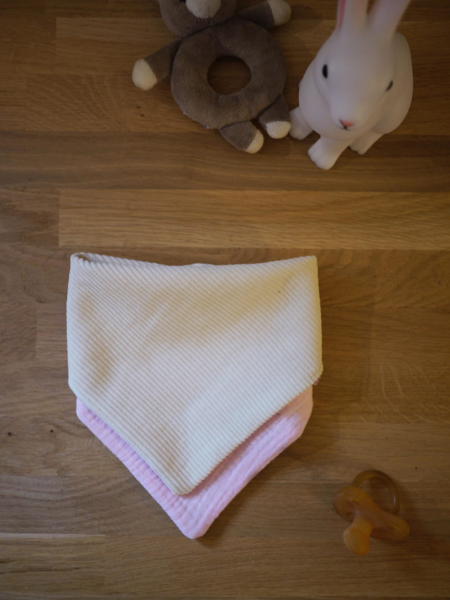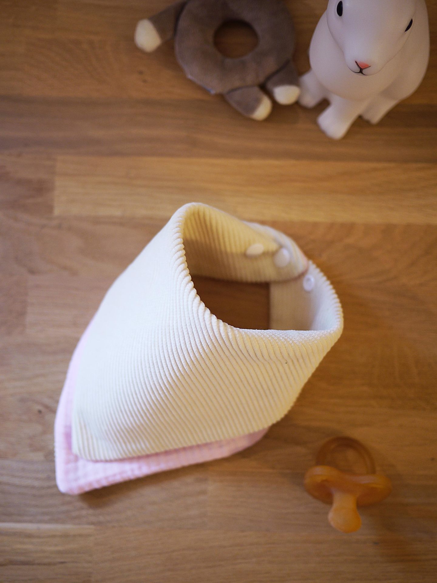 Bavoir bandana réversible – Gaze de coton moutarde et velours