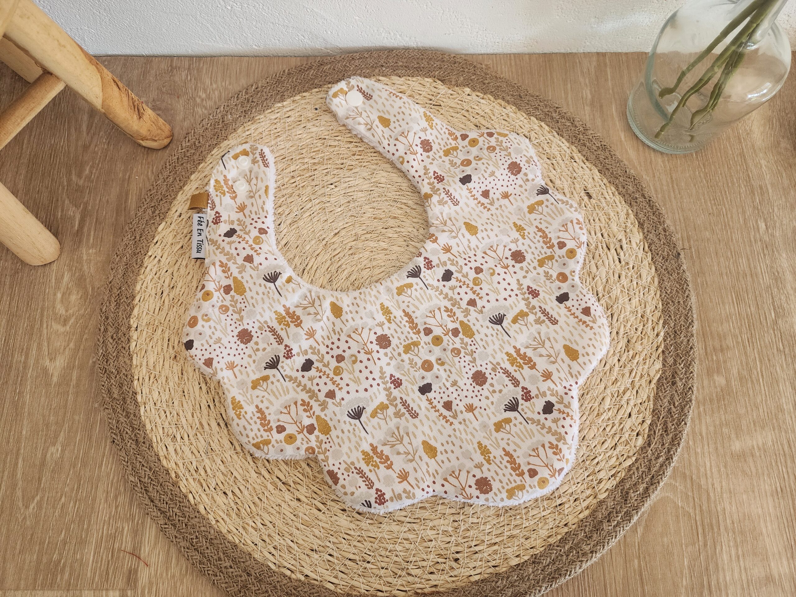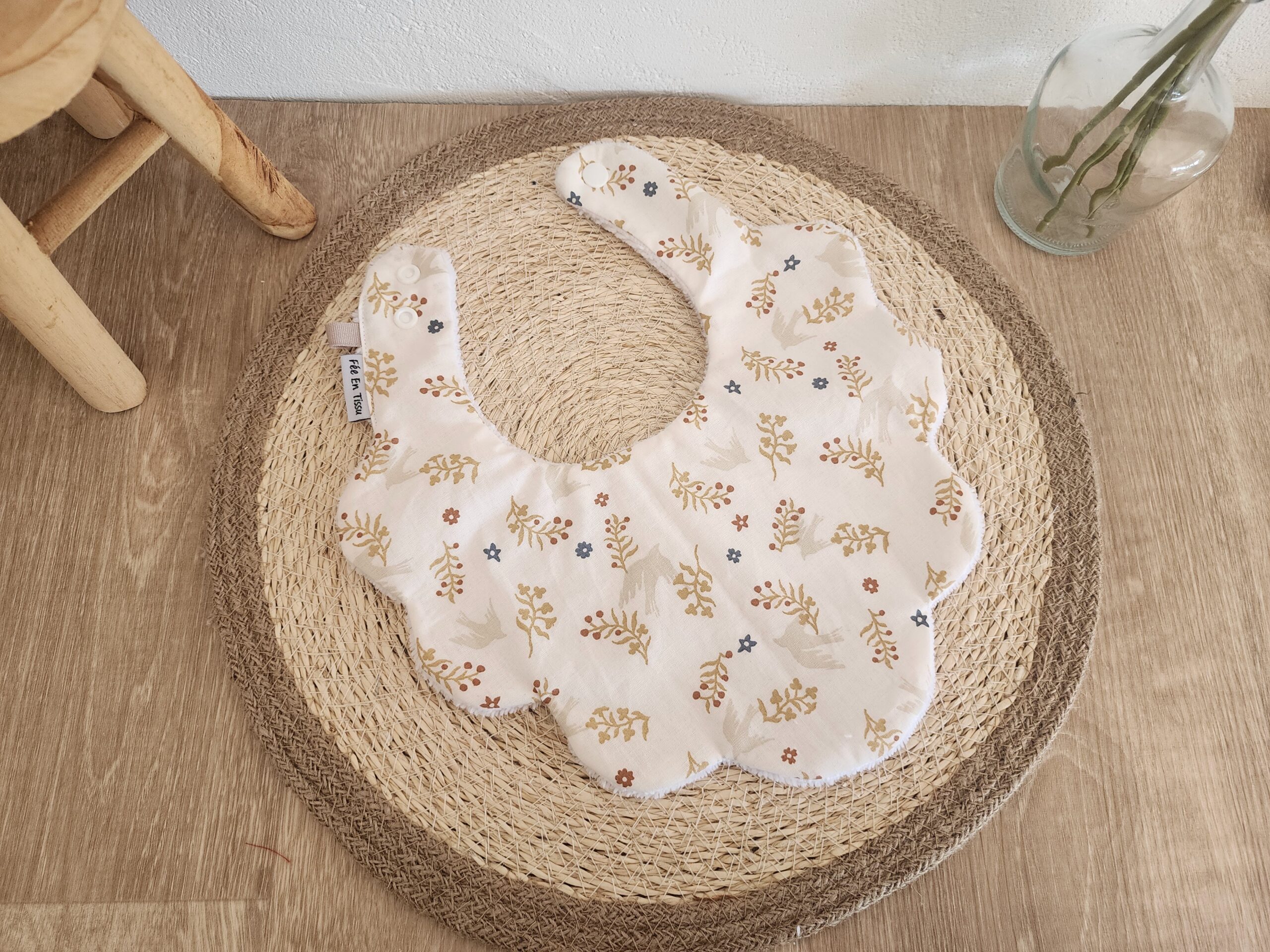 Bavoir bébé fleurs tissu coton fleuri bohème et éponge bambou