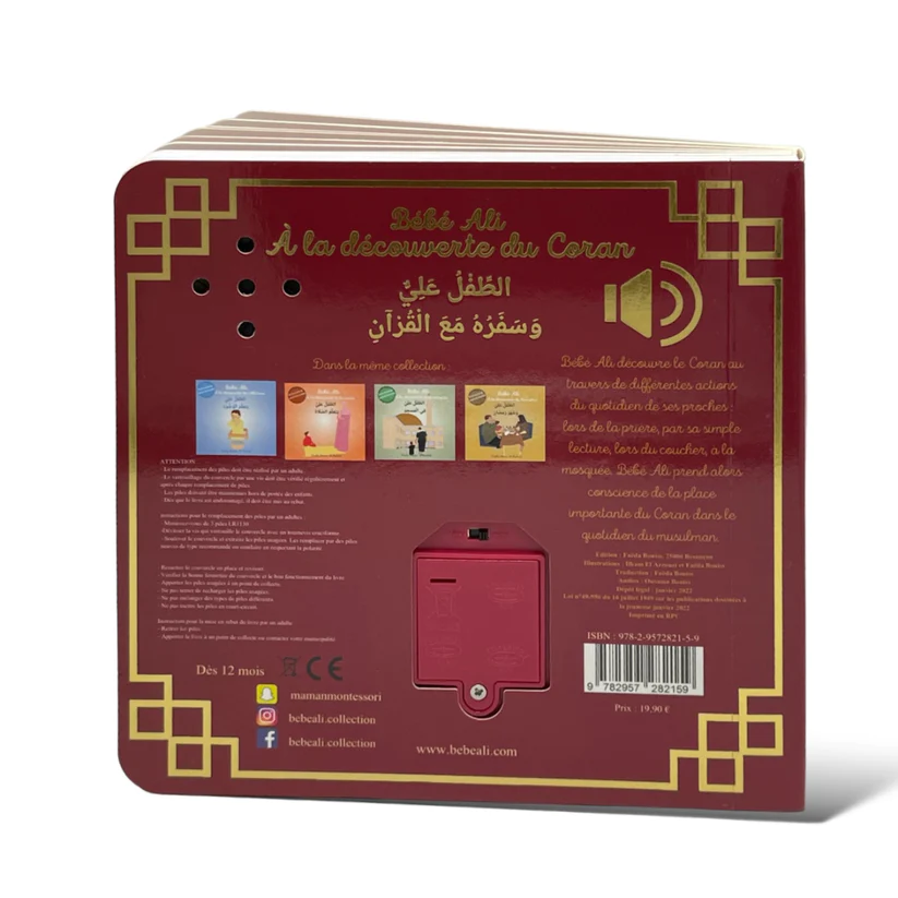 Dans ce tome de la collection, Bébé Ali découvre avec le Coran, ce livre si important dans la vie des musulmans. Pour cela, le livre est un livre sonore, conçu avec des petits boutons sur lesquels l’enfant devra appuyer pour entendre et écouter le Coran.