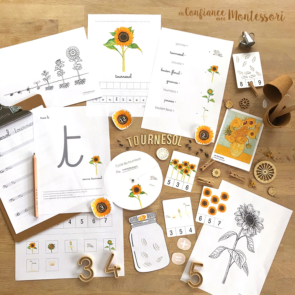 Ce fichier comprend 25 pages d’activités sur le thème du tournesol inspirées de la pédagogie Montessori. Il est dédié aux enfants de 3 à 7 ans. Lire la description pour plus de détails. Format numérique PDF à télécharger.