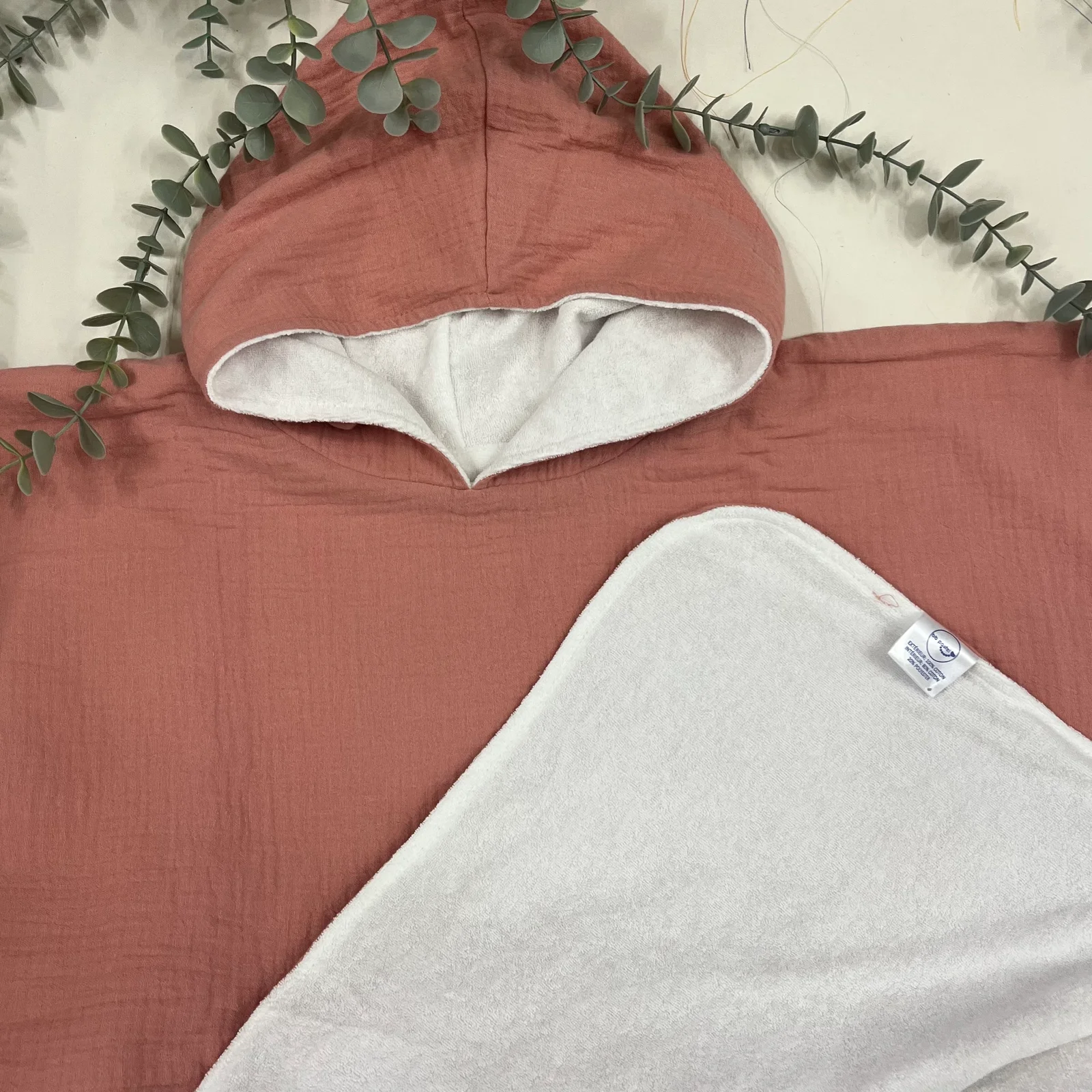 Choisissez parmi plus de 5 coloris pastel (taupe, vert eucalyptus, rose clair, ocre et vieux rose) pour coordonner la cape de bain à votre univers. Ajoutez le prénom brodé ou un petit mot tendre pour offrir une pièce unique et précieuse — un cadeau plein de sens et d’émotion.
