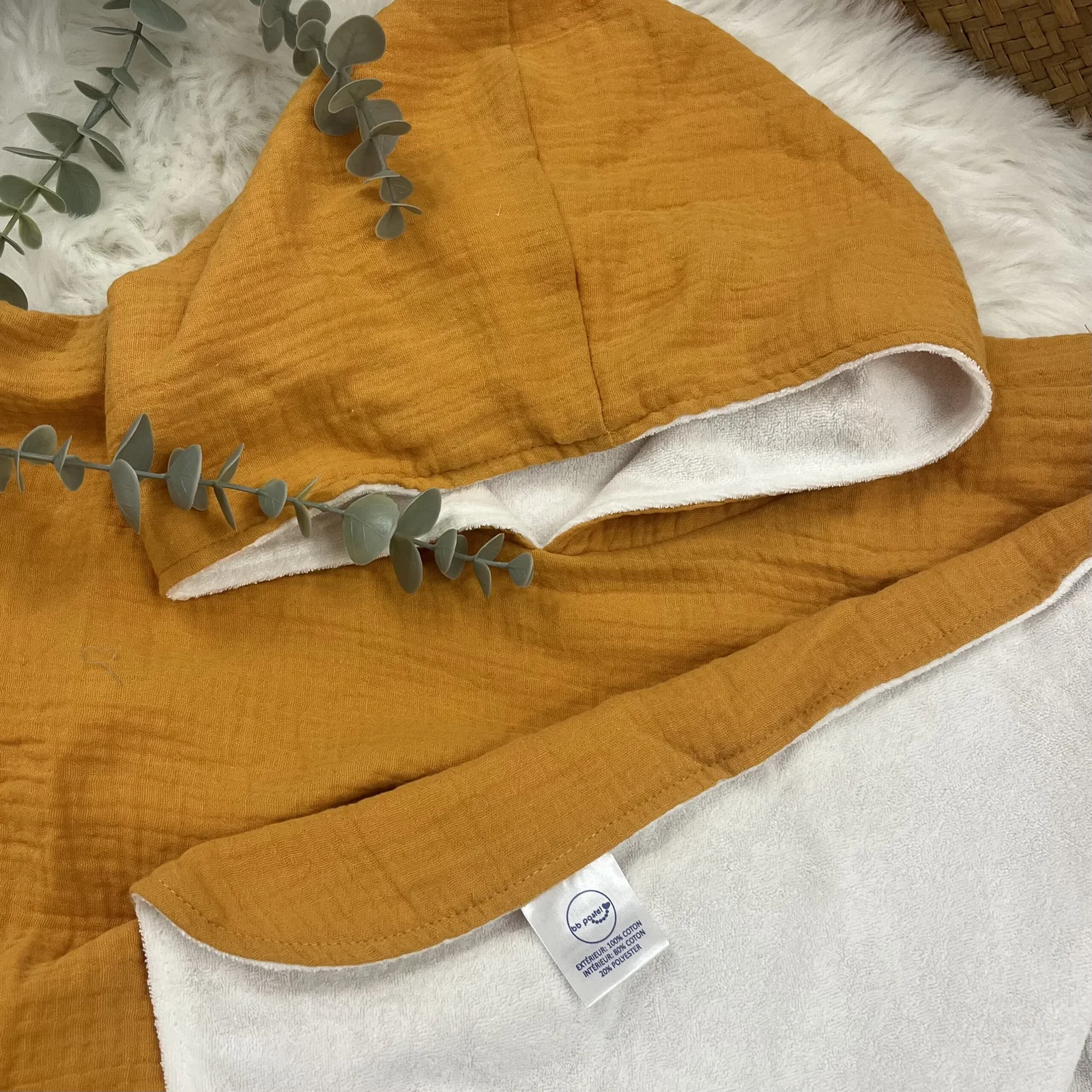Cape de bain bébé en coton biologique ultra douce, 100 % naturelle et respectueuse de la peau sensible. Dimensions généreuses, parfaite pour envelopper bébé après le bain. brodé avec la couleur de votre choix.