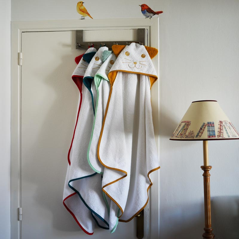 Cape de bain chat moutarde