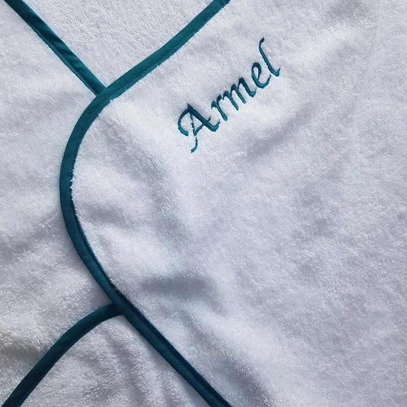 Tout doux tout mignon pour sécher bébé tout en douceur. Une frimousse de petit chat, brodée pour faire craquer encore plus papa et maman. Une taille de 75*75cm, une capuche doublée en lange de coton à l’intérieur assortie a la couleur du biais. Personnalisez cette cape de bain avec le prénom de bébé pour un cadeau original et personnel. La broderie est réalisé dans le même coloris que le biais. (autre couleur possible sur demande) Entièrement dessinée et fabriquée à la main à Nantes, France.