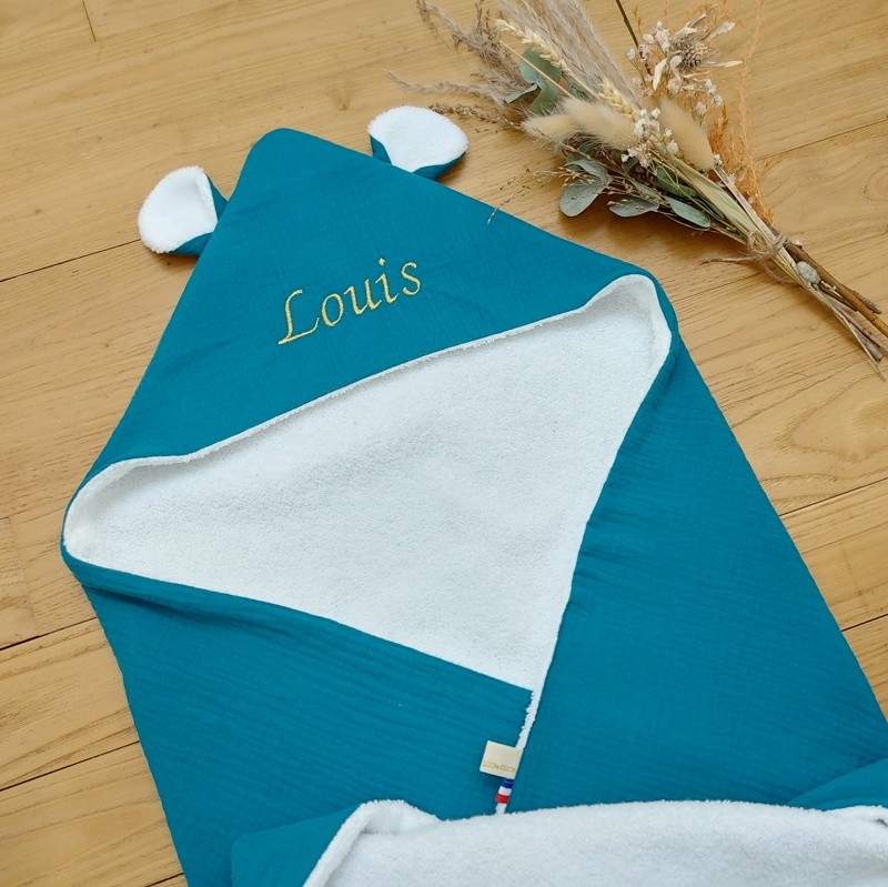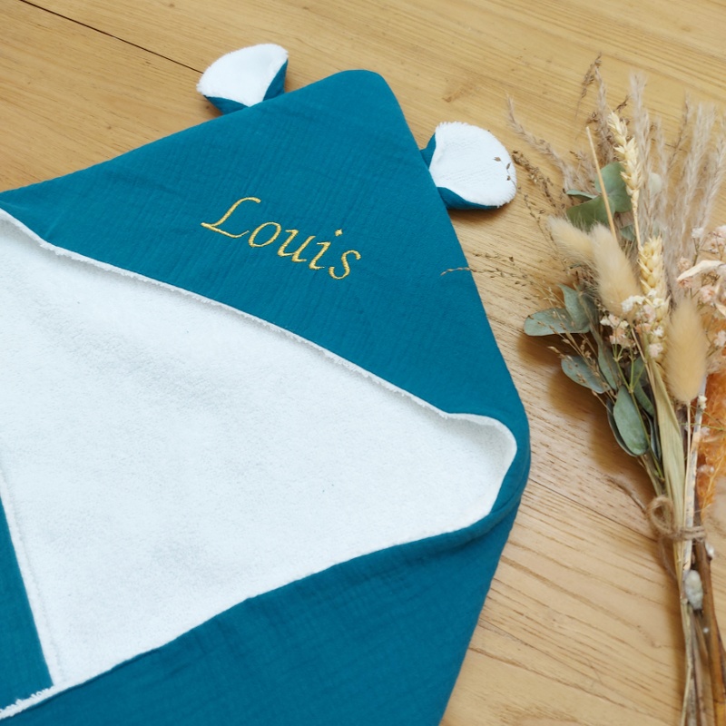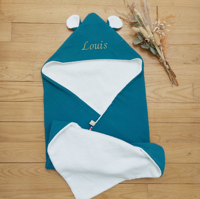 Camille, la cape de bain est un cadeau de naissance idéal, un cadeau durable que l’enfant gardera longtemps.