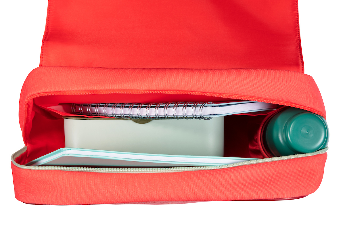 Egalement portée sur le dos ou à la main, Il est idéal pour ranger le goûter, la gourde et les mille et un petits autres objets pour l’école.