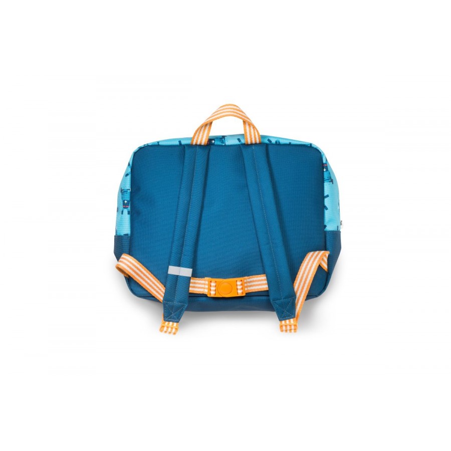 Ce cartable à l’effigie de Marius le rhinocéros bleu est doté d’un grand compartiment de rangement zippé pouvant accueillir des cahiers au format A4, une gourde ou encore un doudou. Il y a également une poche de rangement pour un carnet de liaison ou un goûter. Bien conçu, il dispose d’un élastique maintenant droite une gourde d’une capacité maximale de 600 mL.