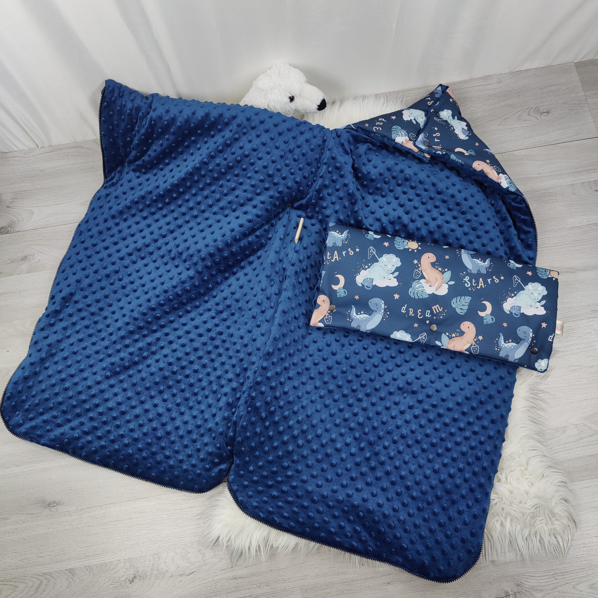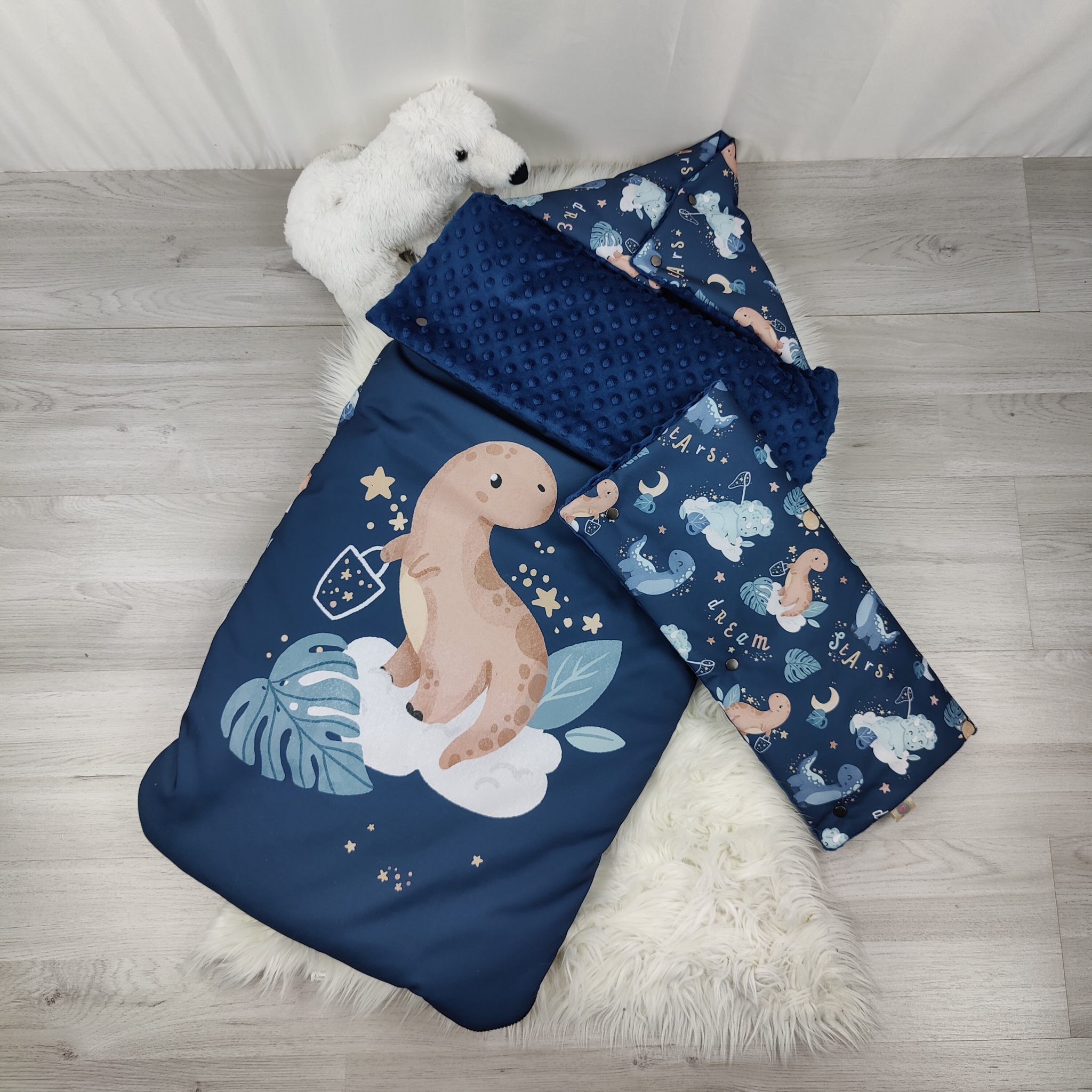 Chancelière Dino bleu fond bleu