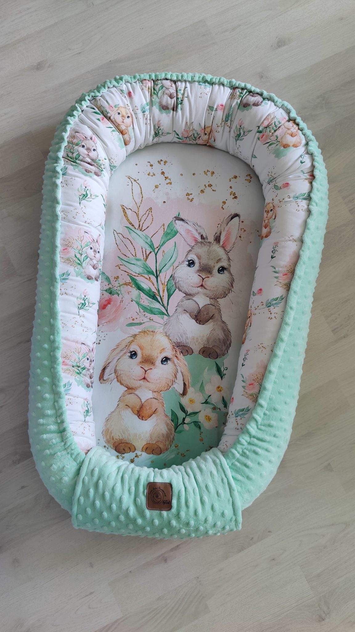 Cocon 0-18 mois Tissu lapin / Minky Vert d’eau
