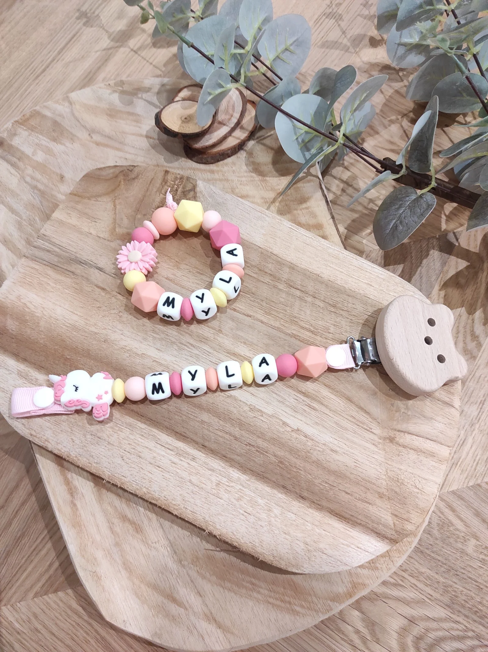 Coffret duo : Attache jouet + Anneau de dentition assortis: Modèle simple d’utilisation: L’attache jouet s’attache à l’anneau de la tétine grâce à un système de boutons pression. Les attaches peuvent être mises à la bouche par les bébés, cela n’évite néanmoins pas la vigilance des parents lors de l’utilisation de ce produit. Les formes et textures différentes éveillent les sens des bébés dés la naissance. Attention: Les prénoms au dessus de 7 lettres ne sont pas acceptés !!! le nombre de perles change en fonction du nombre de lettres dans le prénom. Anneau de dentition – hochet conçu spécialement pour les bébés. Conformes aux…