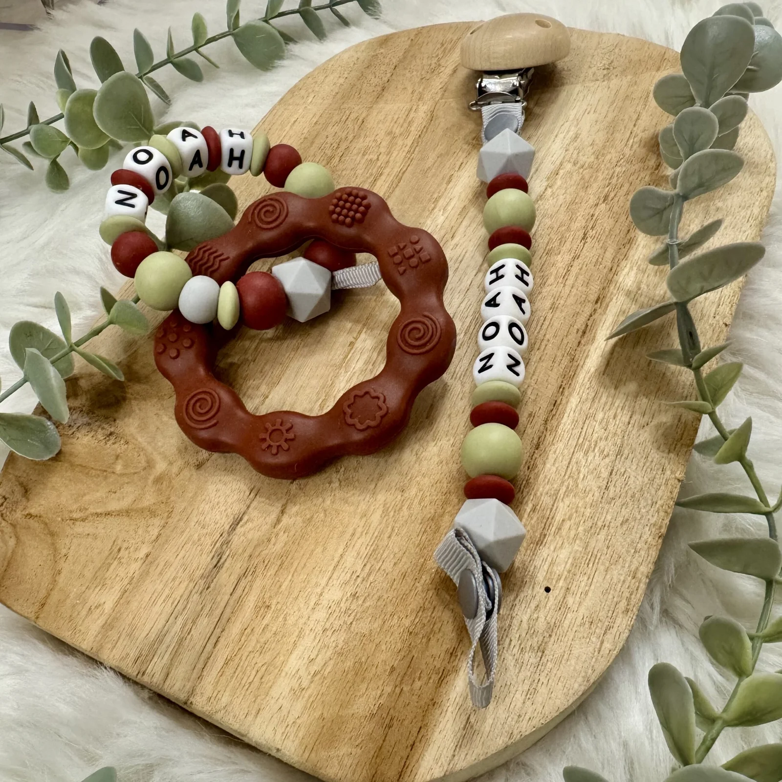 Offrir un cadeau utile, beau et sécurisé devient facile avec notre coffret duo personnalisé : attache tétine et anneau de dentition. Pensé pour les tout-petits et les jeunes parents, ce coffret réunit deux indispensables du quotidien, personnalisables et fabriqués à la main avec des matériaux testés et approuvés en laboratoire.