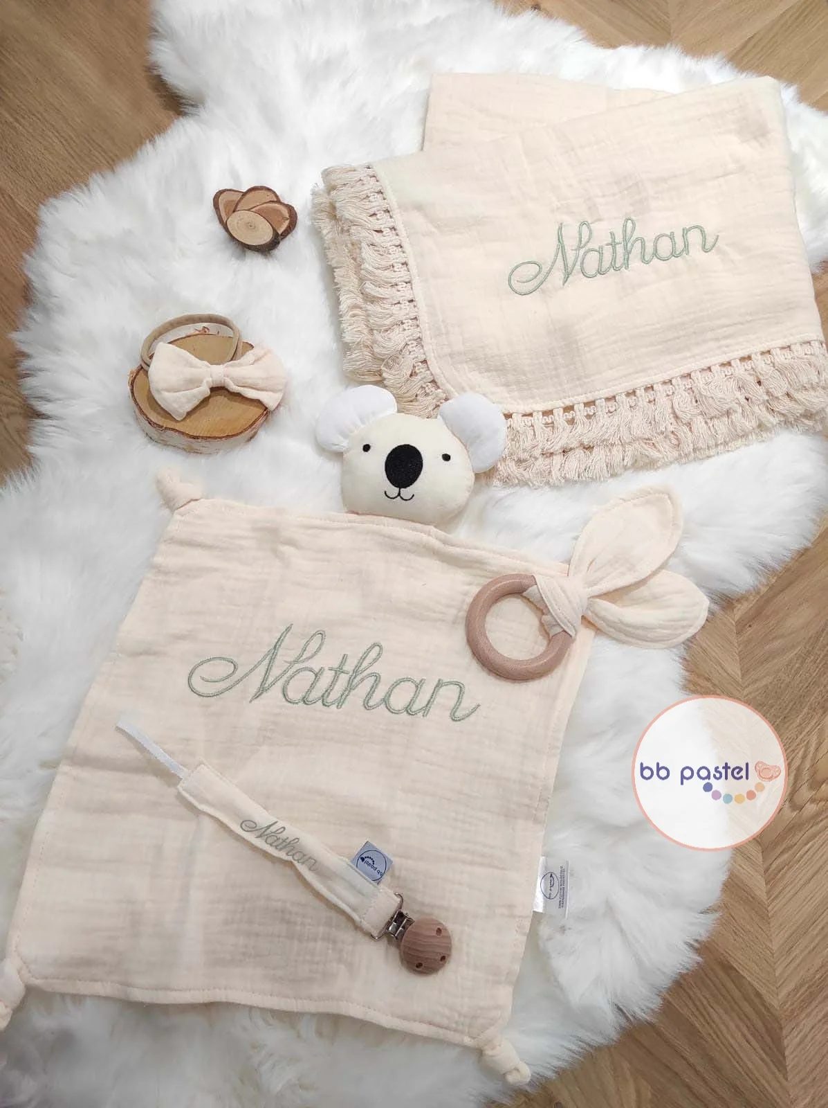 Créez un Coffret personnalisé Maxi koala crème qui allie tendresse, utilité et design élégant. Ce duo comprend :