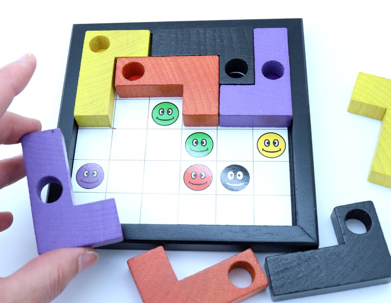 Le Coïncidix master est un jeu de logique contenant 39 défis de difficulté progressive. But du jeu : Positionner une grille dans le cadre et placer les pièces du jeu en faisant coïncider le trou de chaque pièce avec une tête. En fonction de la difficulté, les têtes représentées sont colorées ou grisées.