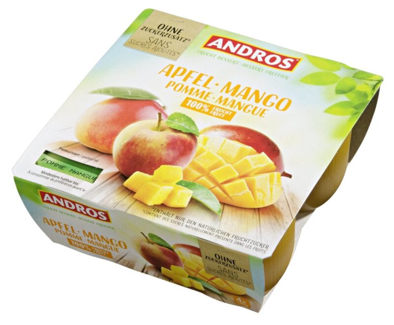 Compote Pomme-Mangue sans Sucres ajoutés en Pack de 4 Pièces de 100 g