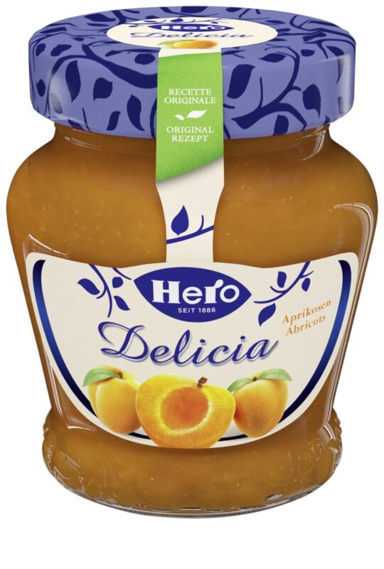 Selon une recette suisse d’origine avec une teneur en fruits de 60%, Hero Delicia, l’originale. 320g en verre. Malgré tout le soin apporté à la confection du produit, la présence de débris de noyaux ne peut être totalement exclue.