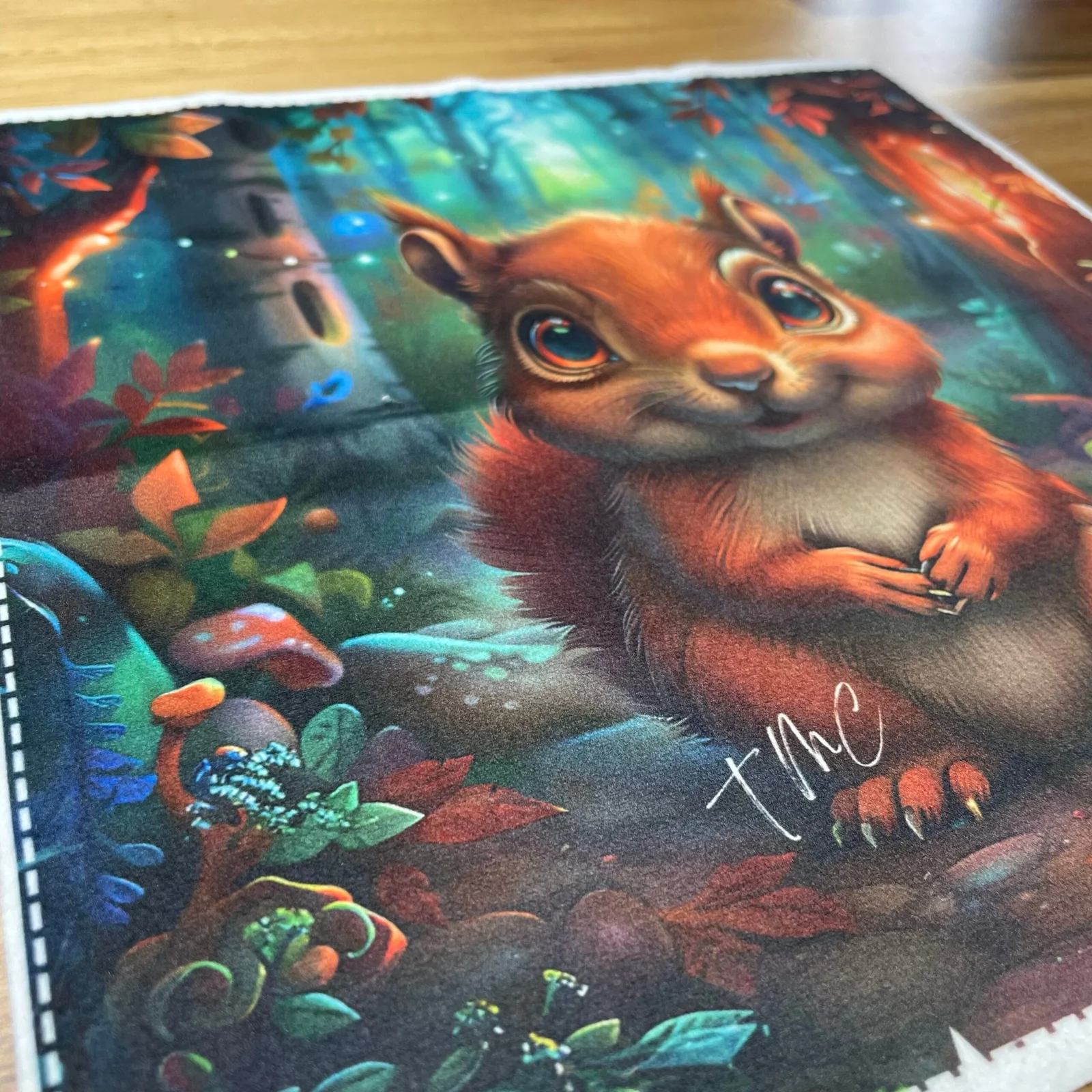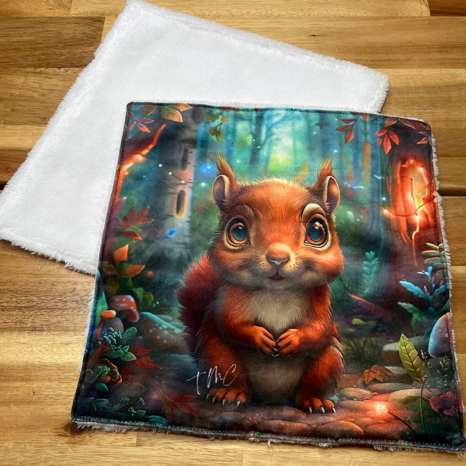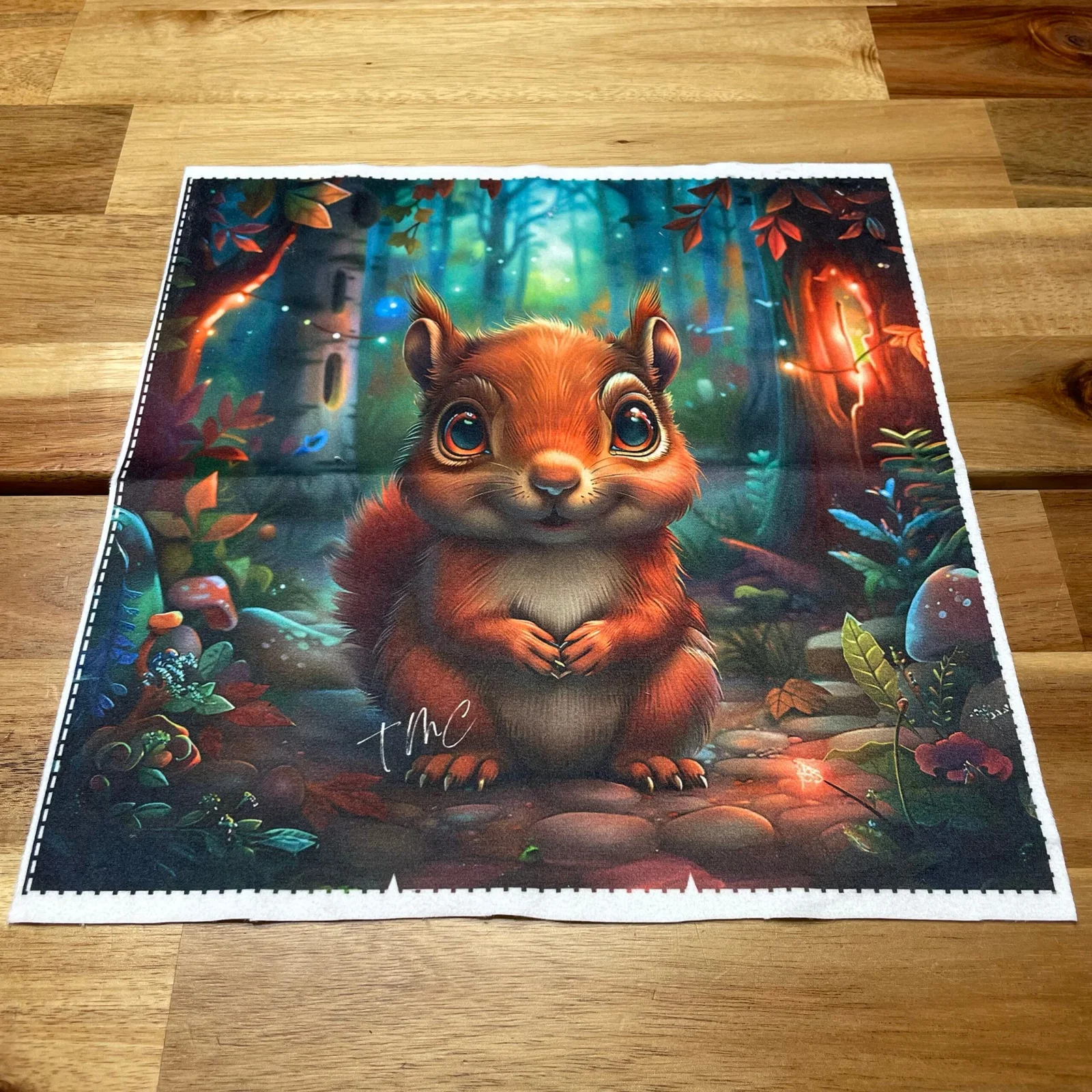 Ce panneau en tissu velours est illustré d’une adorable représentation d’un écureuil. Il est tout doux, souple et agréable à manipuler pour les petites mains.