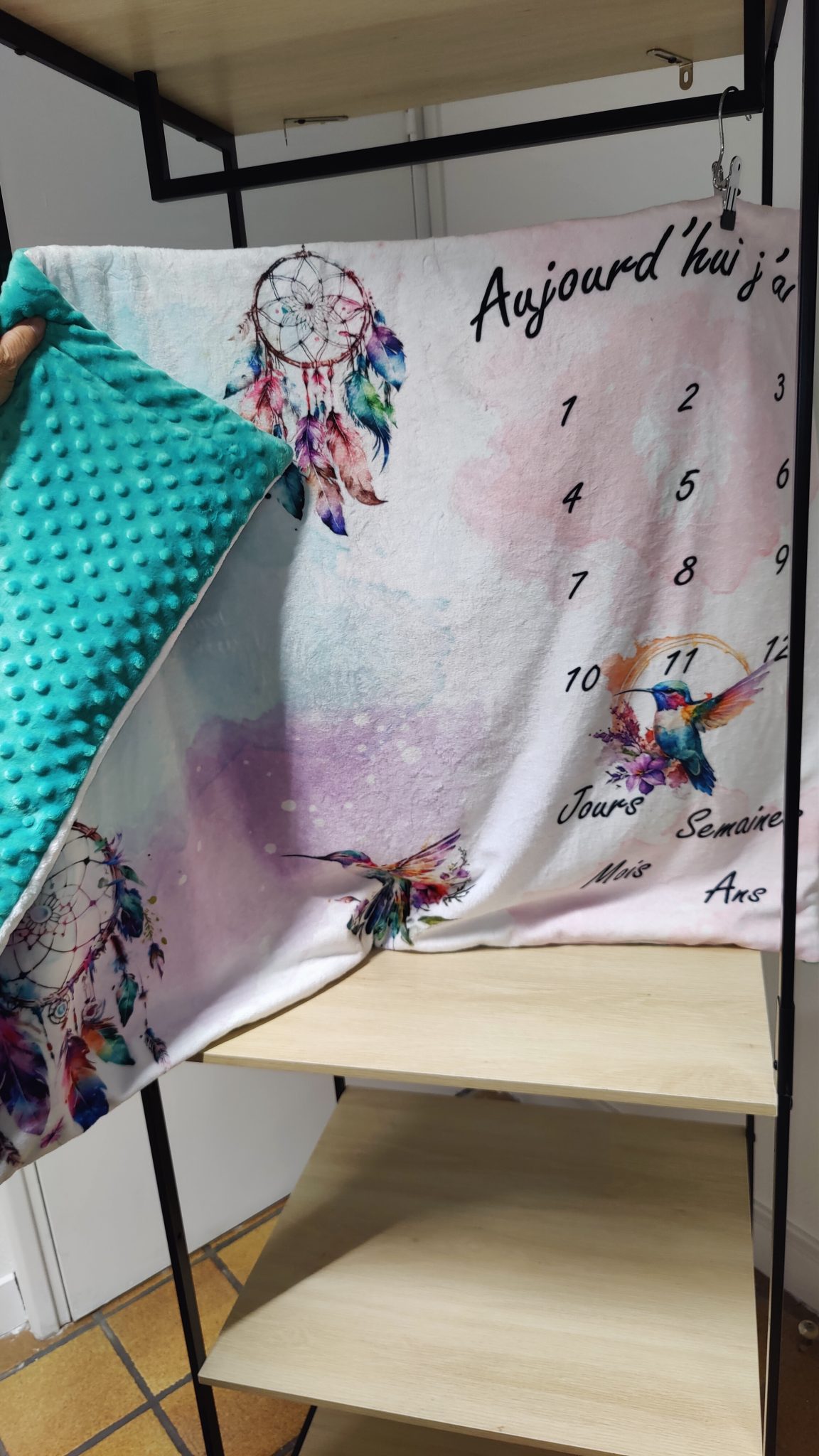 Couverture étape colibri / Minky bleu mer