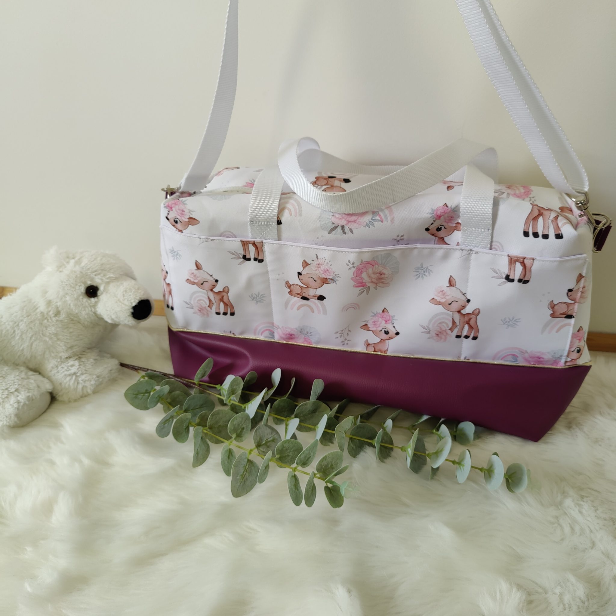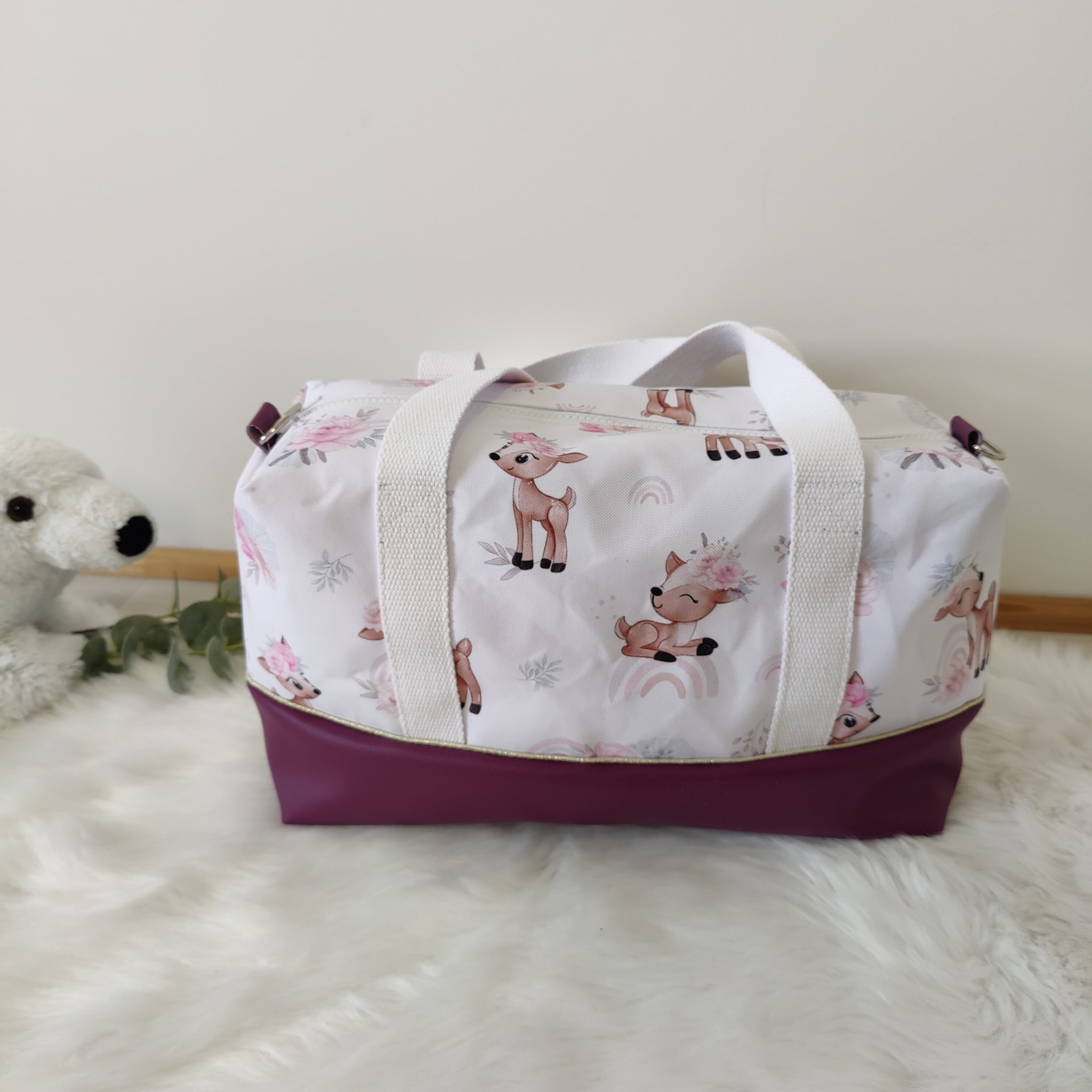 Idéal dans tous vos déplacements que vous ferez avec votre bébé. Il peut également convenir en sac de voyage ou de sport ou week-end. Son gabarit lui permet de passer en bagage cabine lors de vos voyages. Le choix des tissus imperméable se limite uniquement au tissus exclusifs. La bandoulière est en option Le passe poil (biais qui sépare le simili du coton) est doré ou argenté, assorti selon les tissus. Si vous avez une préférence, merci de le préciser en fin de commande. La fermeture éclair sur la poche extérieur est assortie au tissu. Si vous avez une préférence, merci…