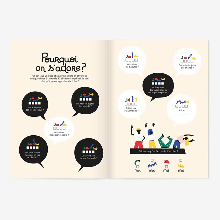 Un livre à compléter en fratrie à 2, 3 ou 4 frères et sœurs ! Des heures de complicité entre enfants (ou adultes !) & un moyen ludique de renforcer les liens. Plus d’informations en description ci-dessous.