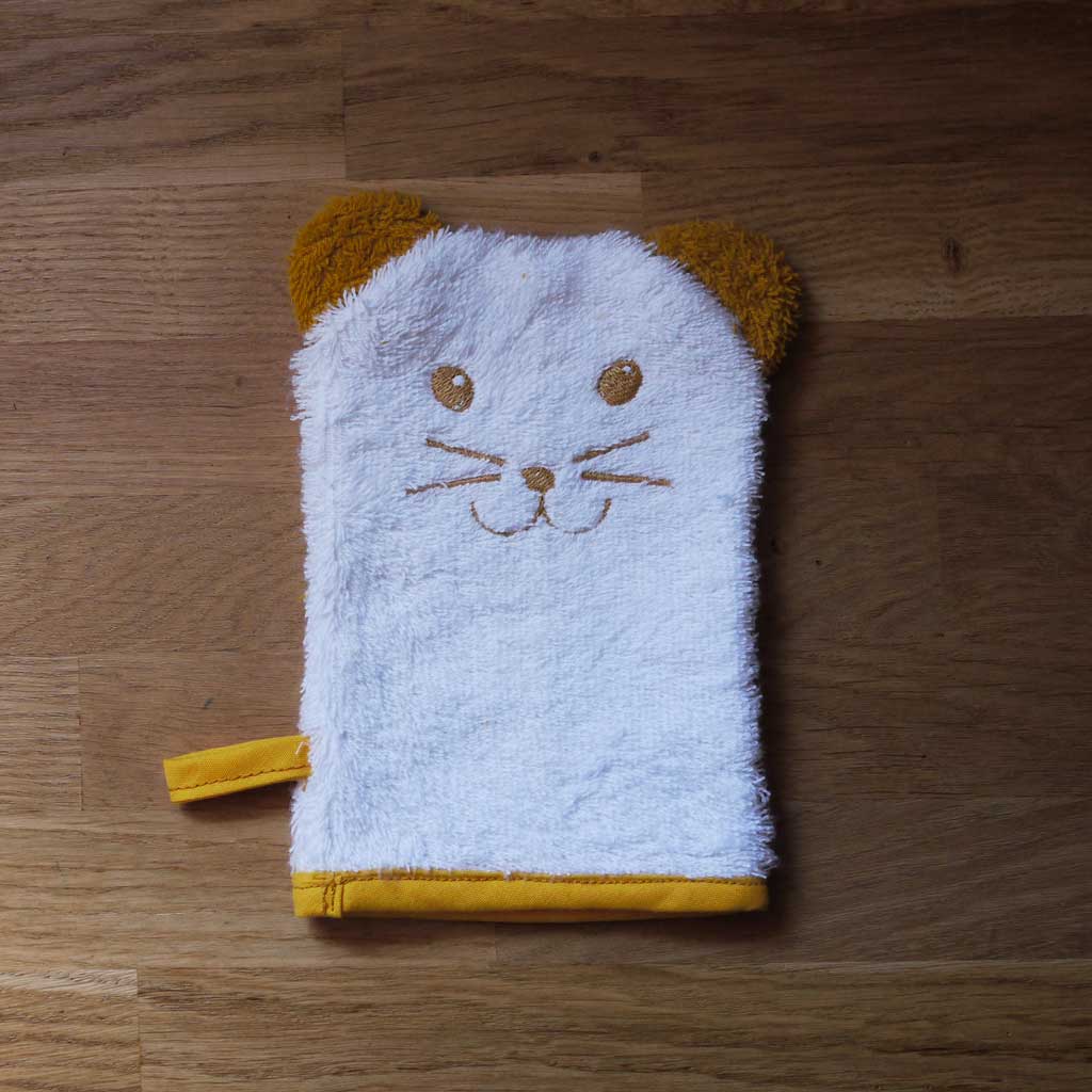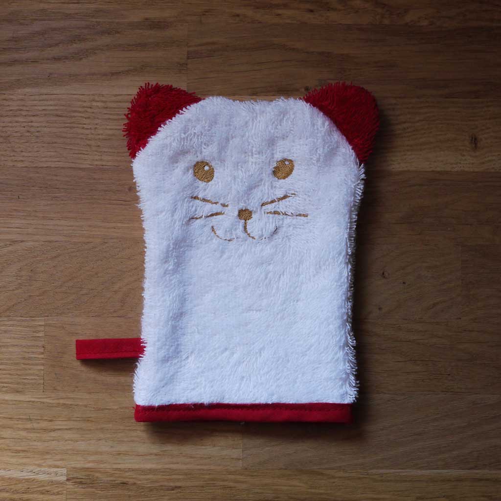 Un gant de toilette adorable que mini aura hâte d’utiliser! Pour se débarbouiller rapidement après le gouter ou alors pour prendre un bain et jouer avec son gant. Cette petite hermine accompagnera votre enfant sous sa douche. (Vous aurez le droit de lui voler mais chuutttt!!!) Il est en 100% coton. Dessiné et fabriqué par loukapi à Nantes Artisanalement.