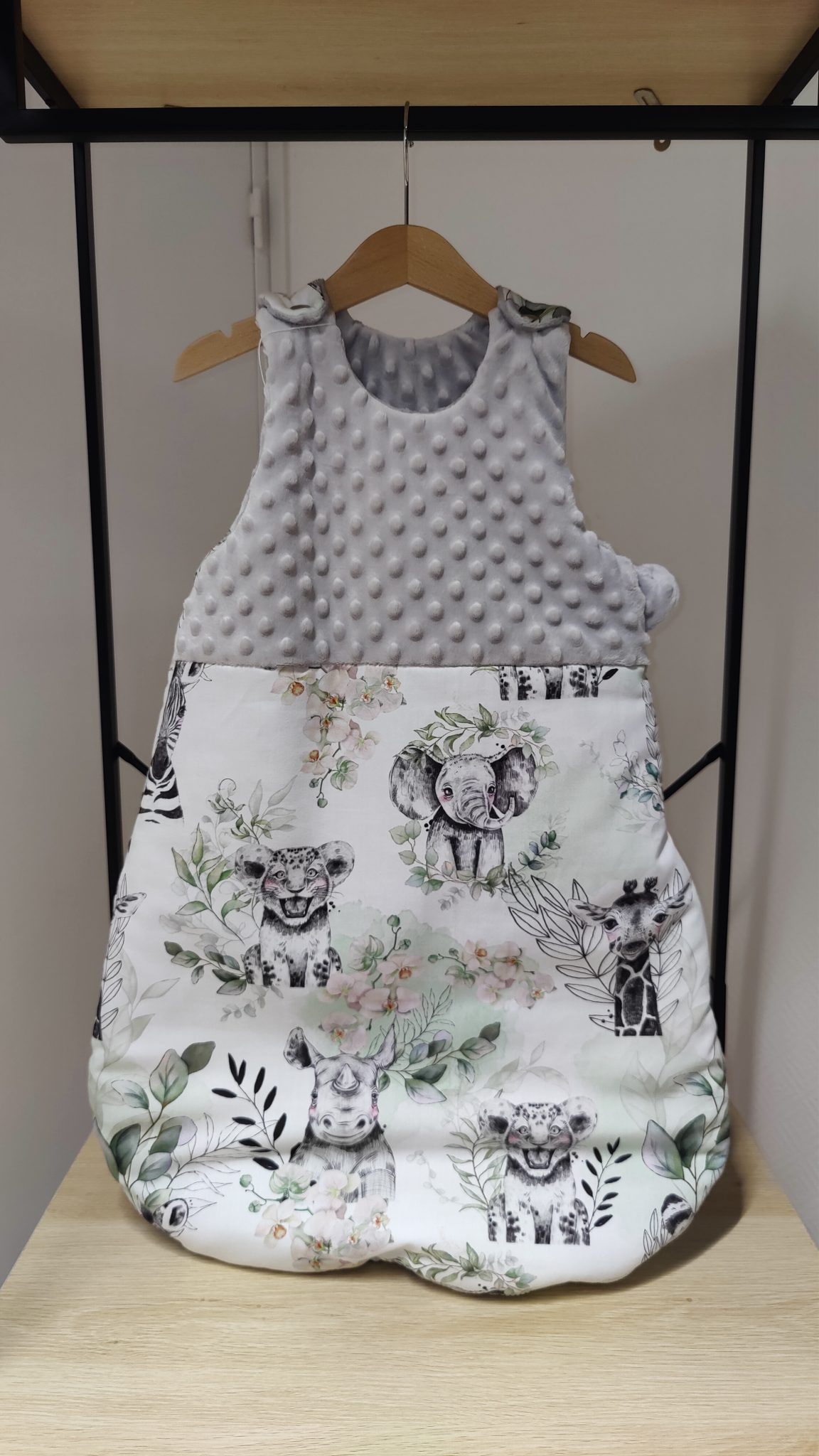 Gigoteuse mi-saison 0-6 mois Tissu exclusif savane vert d’eau / Minky gris clair