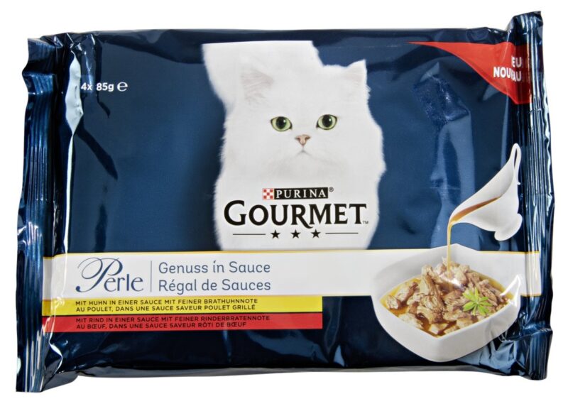 Gourmet Perle Régal Sauces Viande en Pack de 48 Pièces de 85 gr Au Poulet, dans une Sauce saveur Poulet Grillé Au Boeuf, dans une Sauce saveur Rôti de Boeuf