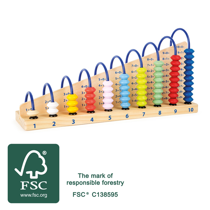 Ce boulier en bois naturel et aux perles colorées permet aux jeunes cerveaux en formation de s’entraîner aux additions et aux soustractions ; Ceci avec des chiffres allant jusqu’à 10.