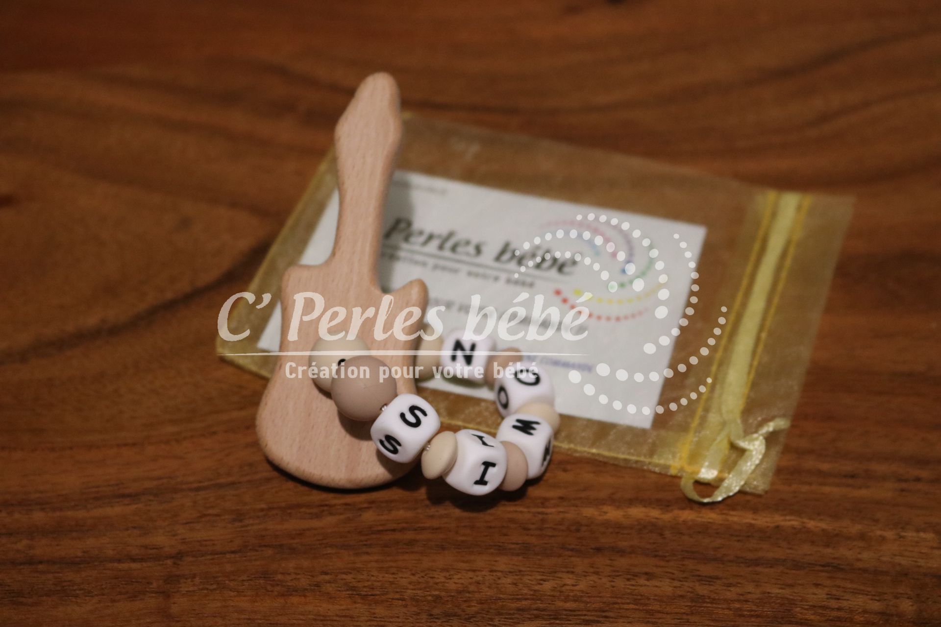 Hochet bois guitare beige