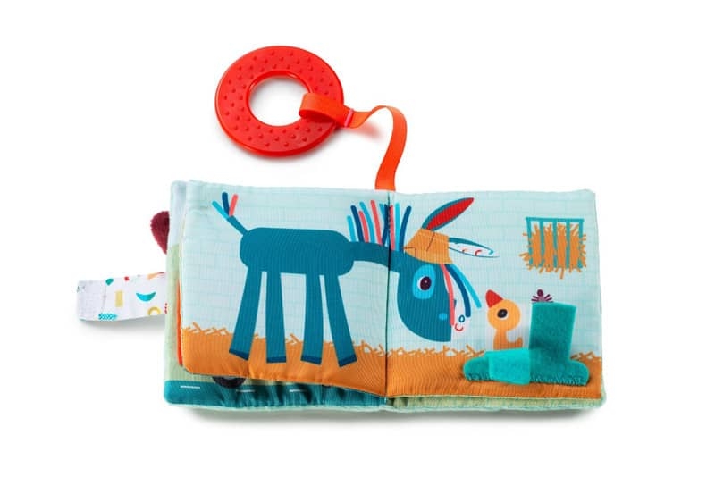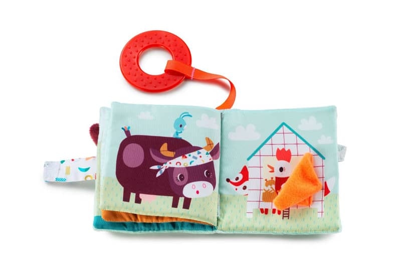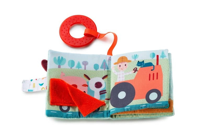 Ce livre est adapté aux petites mains de bébé. En tissu, il est pourvu de différentes textures et de son (bruit papier) à découvrir. Il ne contient pas de texte, mais les illustrations offrent des pistes pour imaginer facilement ses propres histoires. Plein de surprises, cet imagier tout doux stimule la vue et l’audition et présente même un anneau de dentition pour soulager les gencives des tout-petits.
