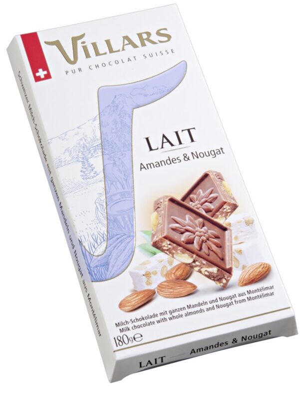 Chocolat au Lait Amandes et Nougat Villars en pack de 2 Plaque de 180 gr