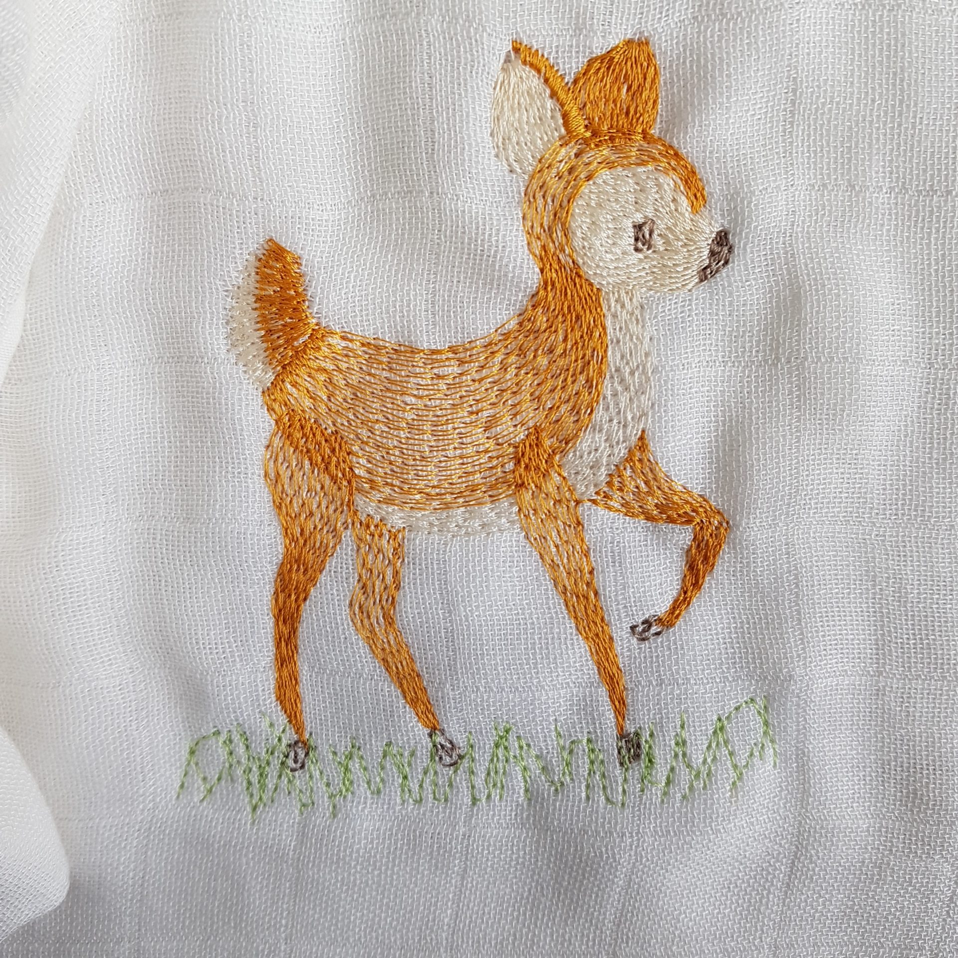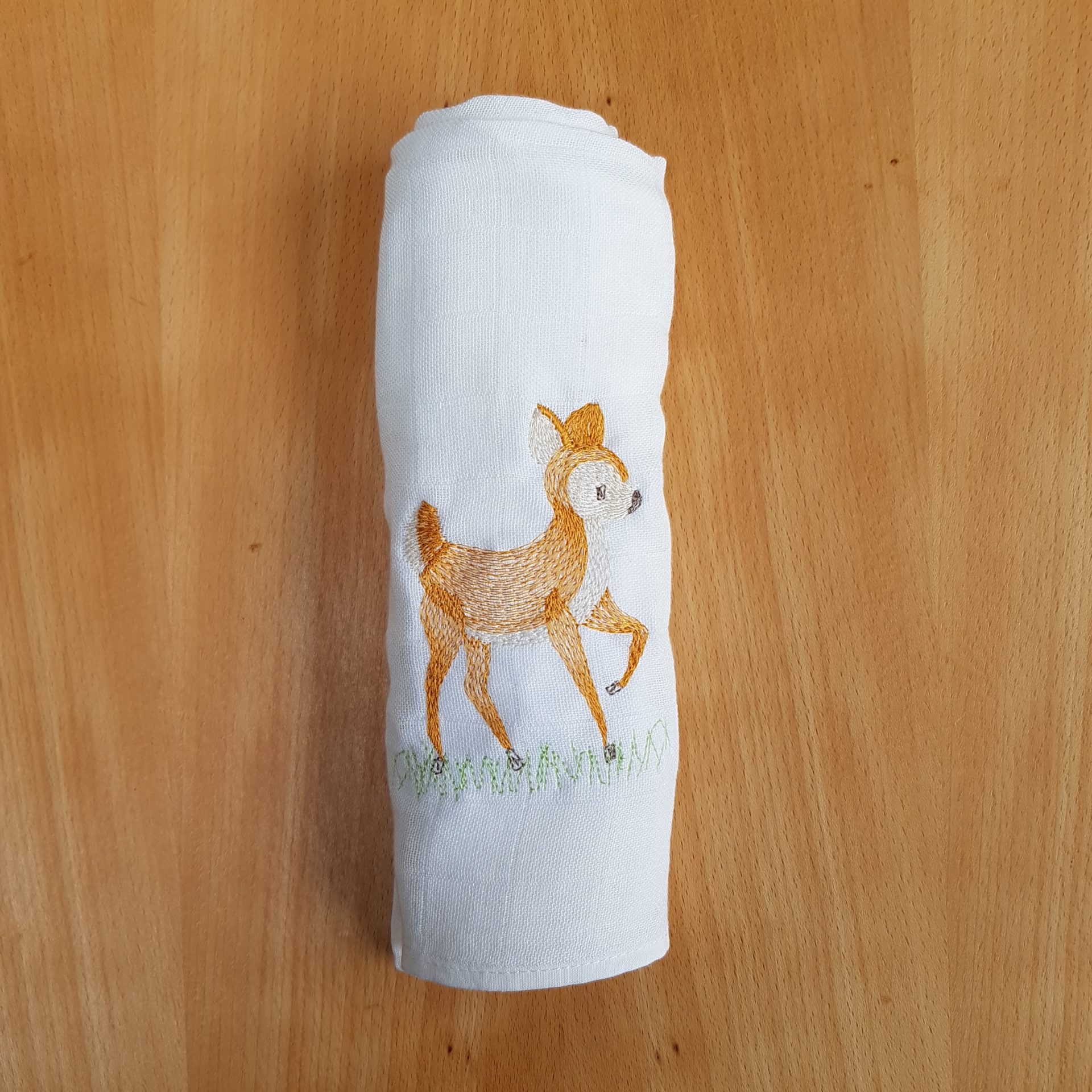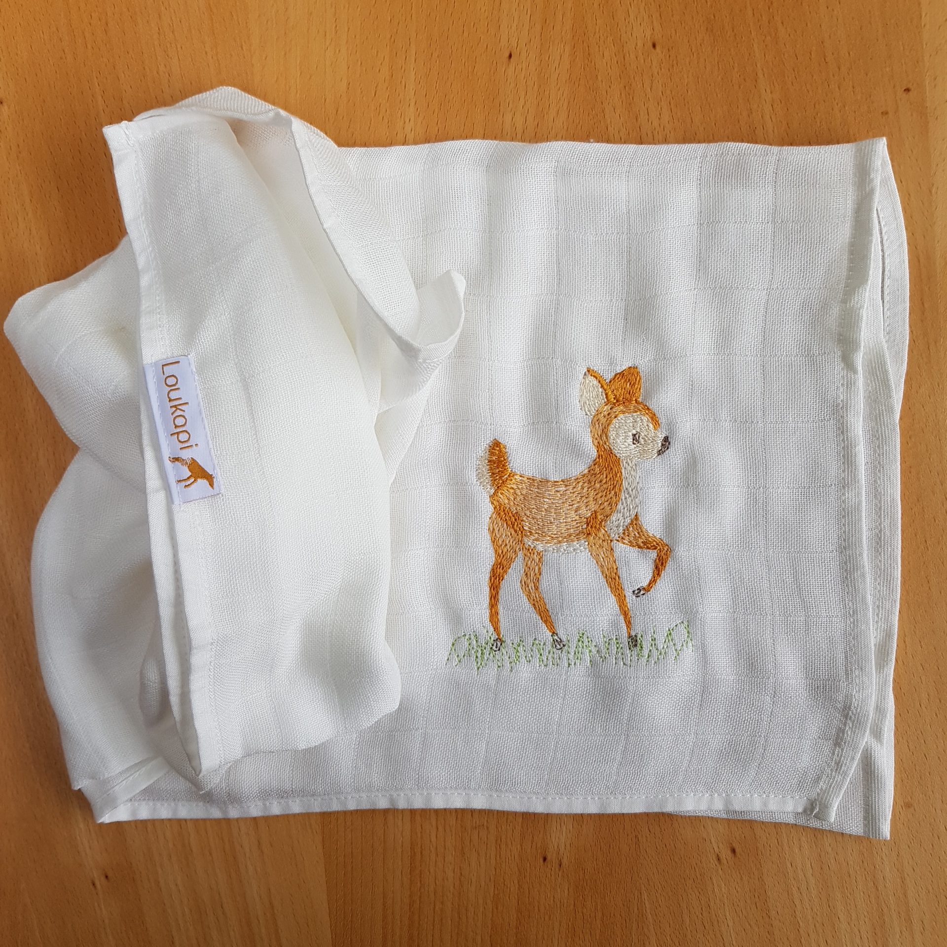 Ce lange brodé d’un jeune faon offre une multitude de possibilités: bavoir, doudou, débarbouillette, protection nomade . Une broderie pleine de douceur pour envelopper bébé. Un indispensable du trousseau de naissance à avoir sous la main en toutes circonstances. Sa légèreté lui permet d’être emporté partout sans pour autant alourdir le sac à langer par exemple. Un Lange personnalisable au prénom de l’enfant pour un cadeau de naissance unique à offrir ou à s’offrir. Très facile à entretenir il sèche rapidement pour vous simplifier la vie. Sa capacité d’absorption augmente au fil des lavages. Il est composé en 100% coton…