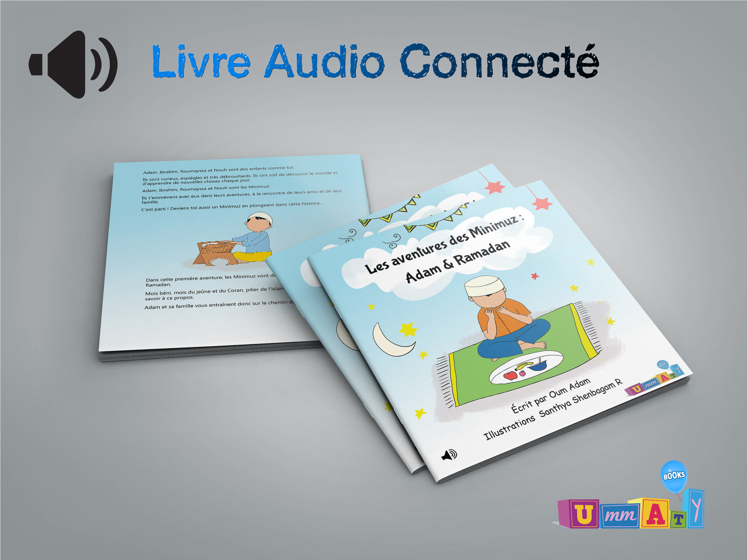 https://ummatyshop.fr/wp-content/uploads/2019/04/The-Adventures-of-the-Minimuz_-Adam-Ramadan.mp3 Le livre « Adam & Ramadan » est plus qu’un livre ; C’est un livre avec audio connecté. Scannez le QR code que vous trouverez à l’intérieur et laissez vous emporter… De belles images colorées et enfantines, un récit basé sur une histoire vraie, une voix douce, adaptée aux petites oreilles : Vos enfants seront séduits par cet ouvrage original et éducatif. Qu’attendez-vous pour gâter les oreilles et les cœurs de tout votre foyer ?