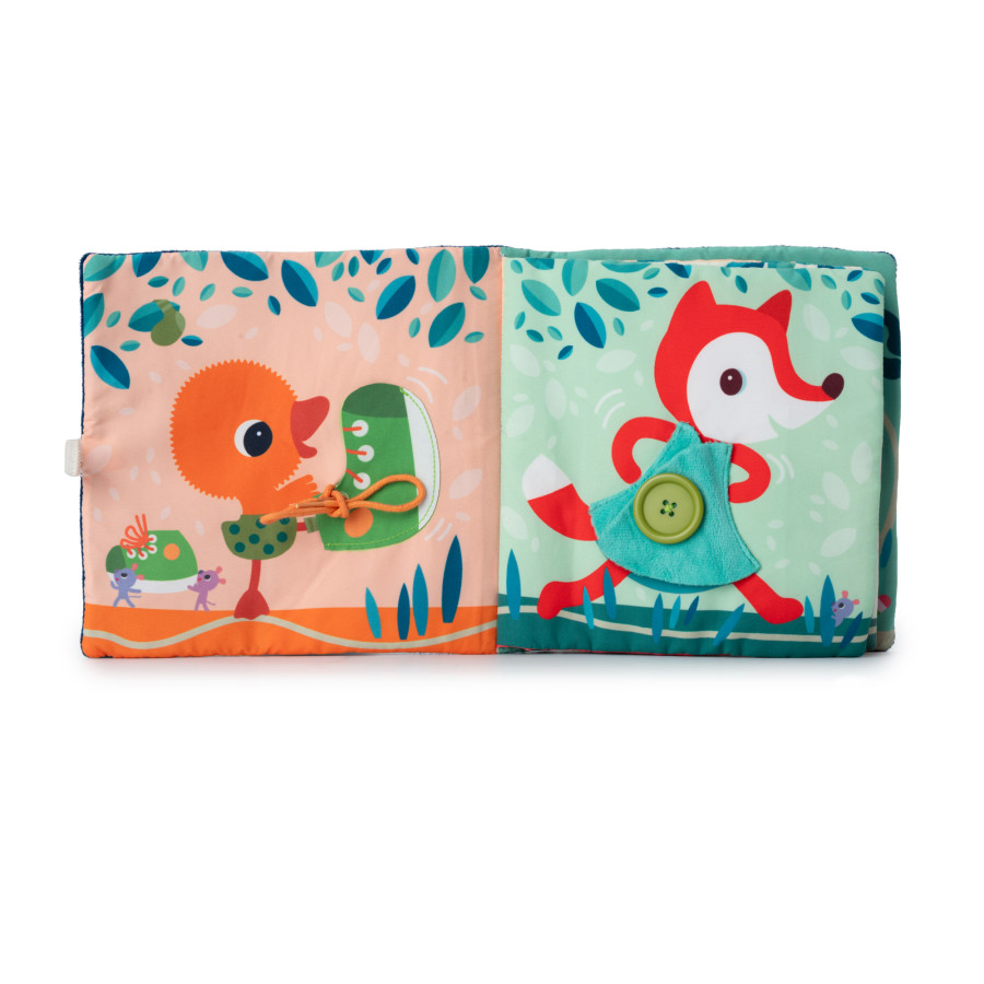 Dès 18 mois, les enfants vont manipuler les différentes fermetures. Fermeture éclair, lacet, bouton, boucle et autre bouton pression sont accessibles pour s’entraîner à s’habiller. Ce livre en tissu favorise l’autonomie.