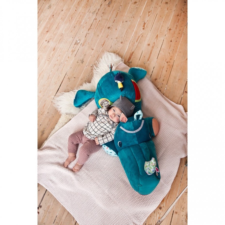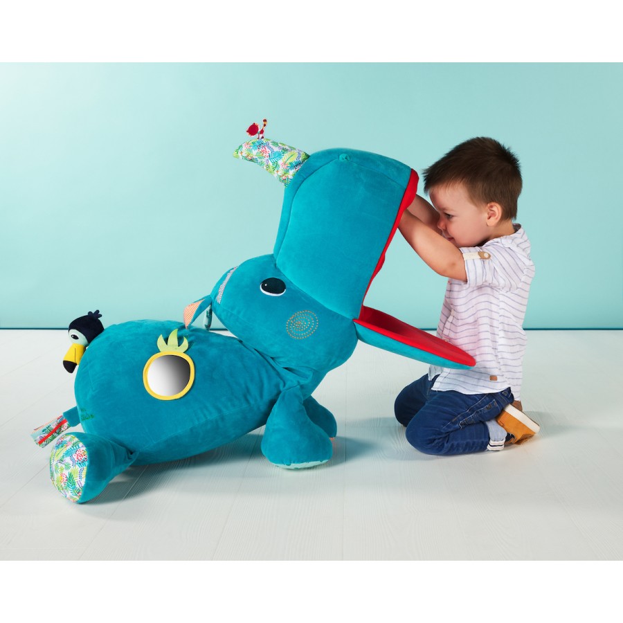 La grande peluche d’activités Marius range secrets est un jouet d’éveil version géante pour éveiller les bébés et servir de coussin. Marius le Rhino n’est pas seulement un merveilleux compagnon de jeu grâce à ses nombreuses fonctionnalités … il sert également de cachette très originale. Son corps tout doux et câlin stimule la curiosité des tout-petits et les pousse à explorer ses différentes activités. Un ami qui restera longtemps dans la chambre de votre enfant.