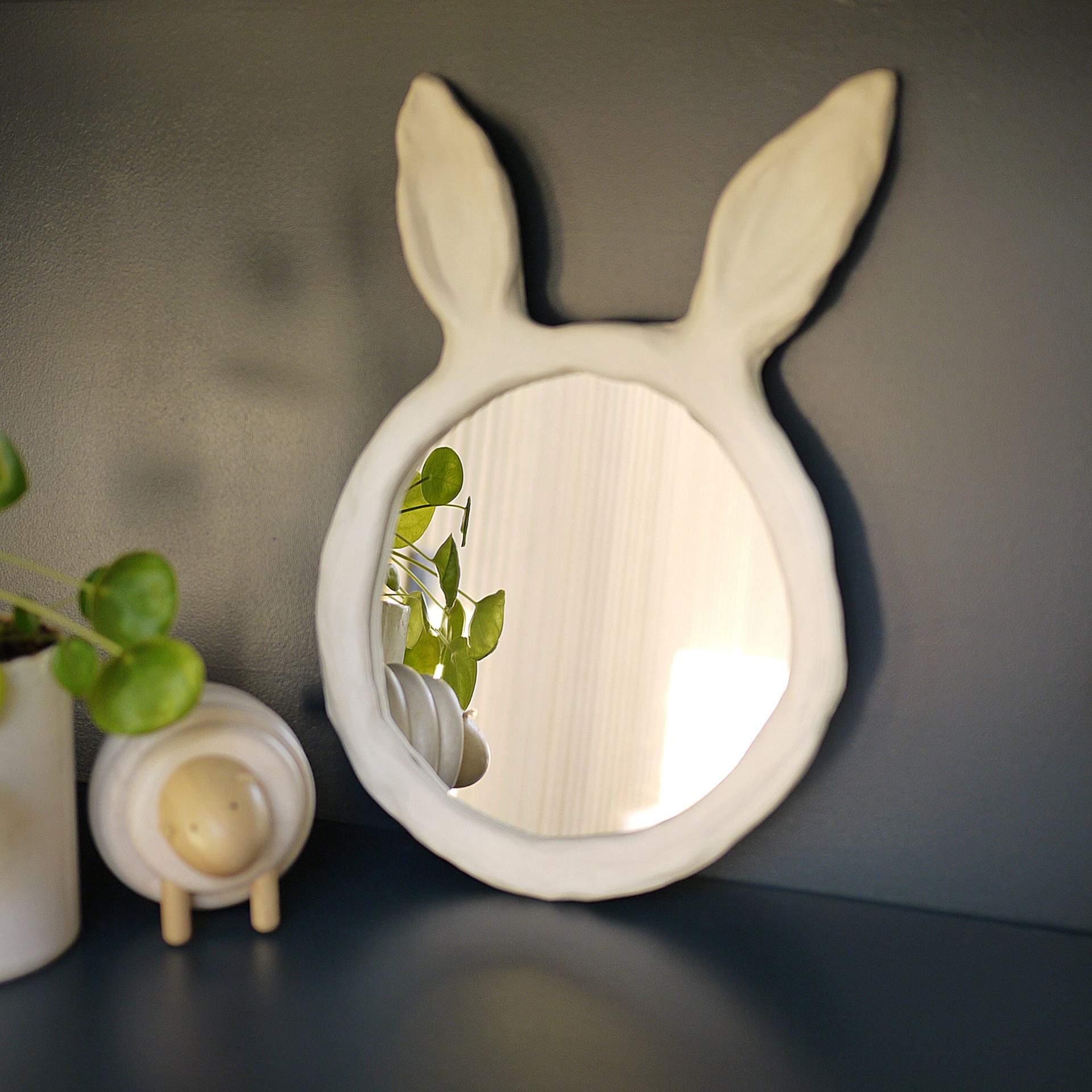 Miroir lapin en céramique pour enfant décoratif