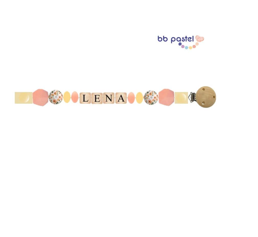 Crée une attache-tétine unique avec prénom, couleurs et perles de ton choix via notre configurateur. Clip bois (ou plastique) et perles en silicone sans BPA. Sécurité et style garantis pour bébé.
