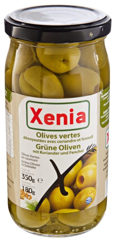 Olives Vertes Dénoyautées Xenia en bocal de 350 gr