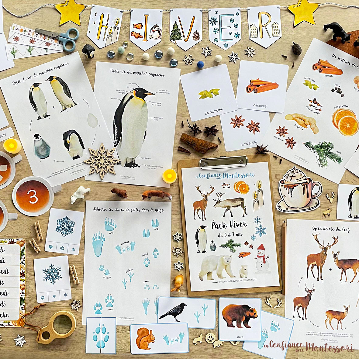 Voici ce que vous découvrirez dans ce pack d’inspiration Montessori sur le thème de l’Hiver :